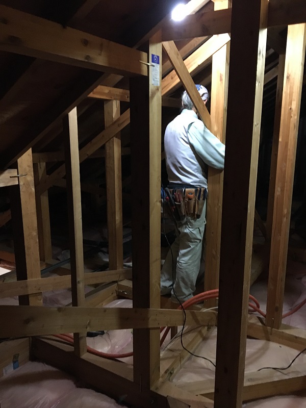 小屋裏部屋とそれに続く階段ができ、いよいよ2階の工事に移ります。