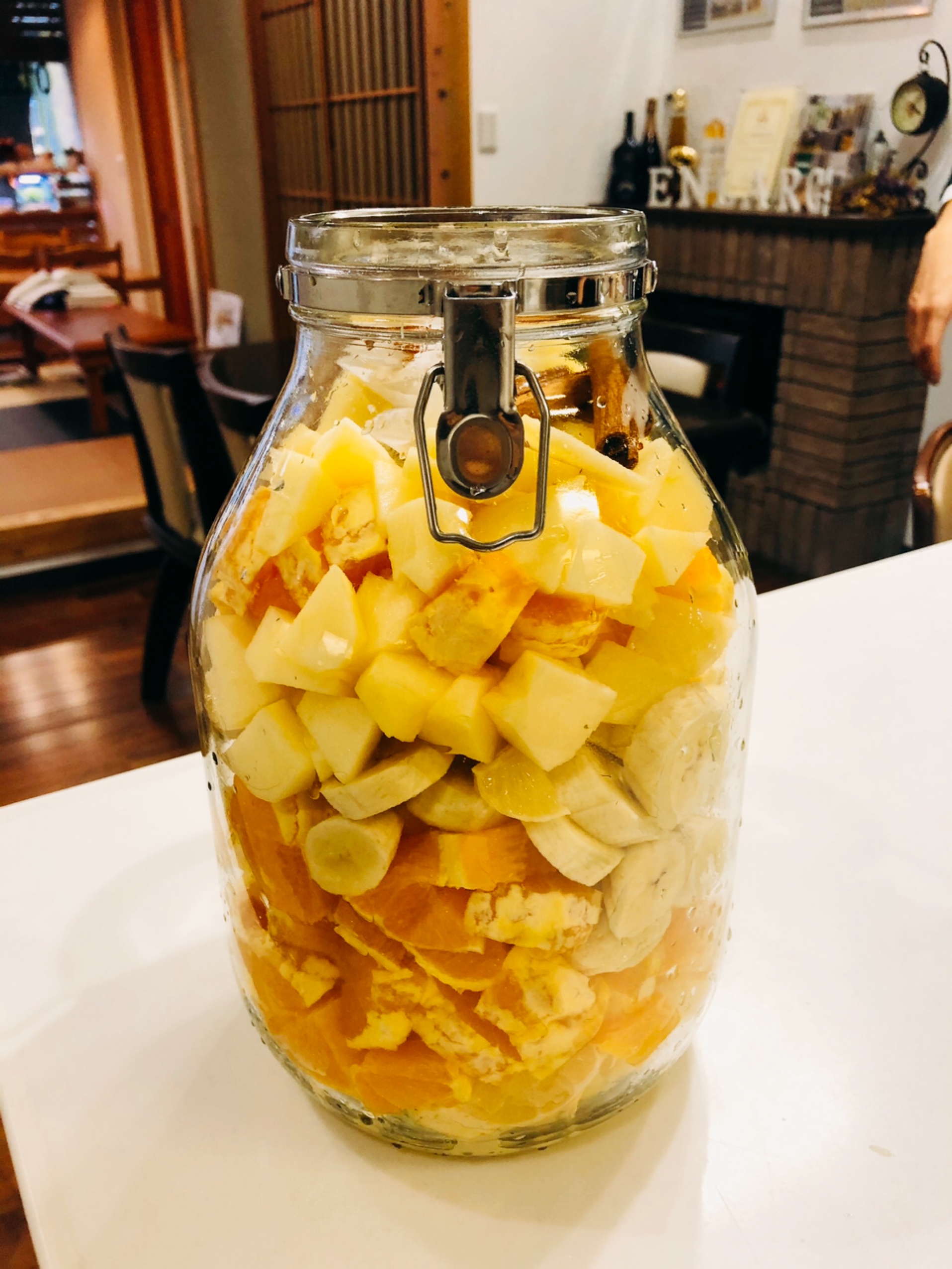 フルーツをカットし、スパイスと一緒に器の中へ🍎🍌🍊🍋