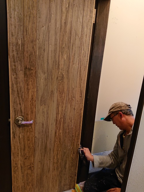 扉の塗装では、M様こだわりの色味を塗装職人さんが見事に再現
