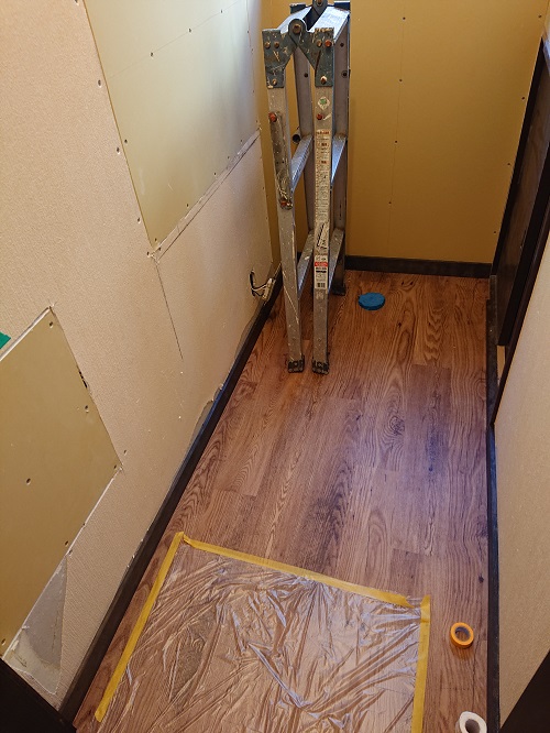 2階トイレ同様、まずは既存設備の撤去・解体をし、床の長尺シート貼りを行います