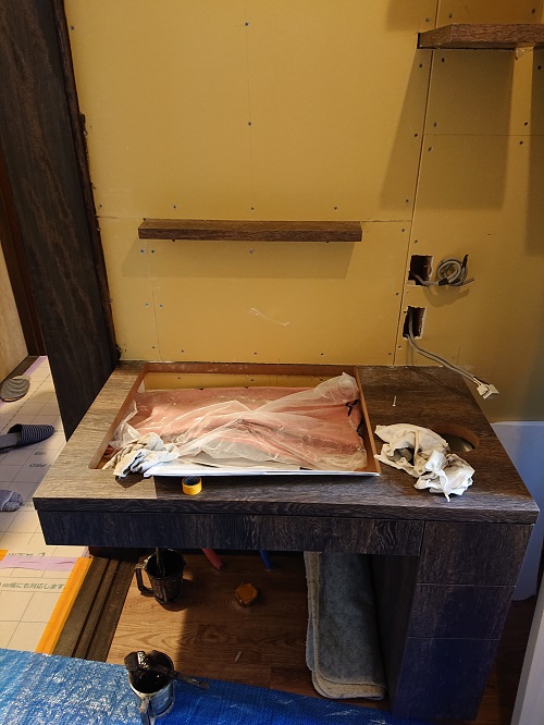 OBのM様の1階お手洗いと洗面所の工事中・完成の様子をご紹介いたします。