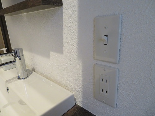 さりげなく、洗面台周りのスイッチ・コンセントにもこだわっています