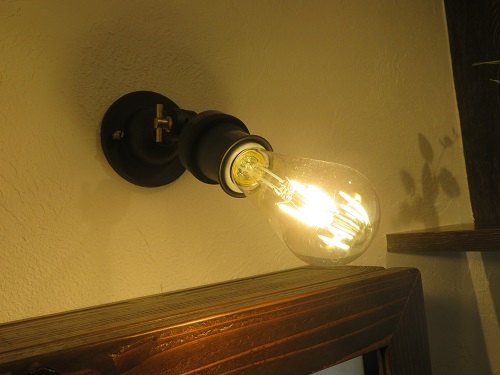 洗面台灯の灯りによって、陰影のある空間が演出されています。