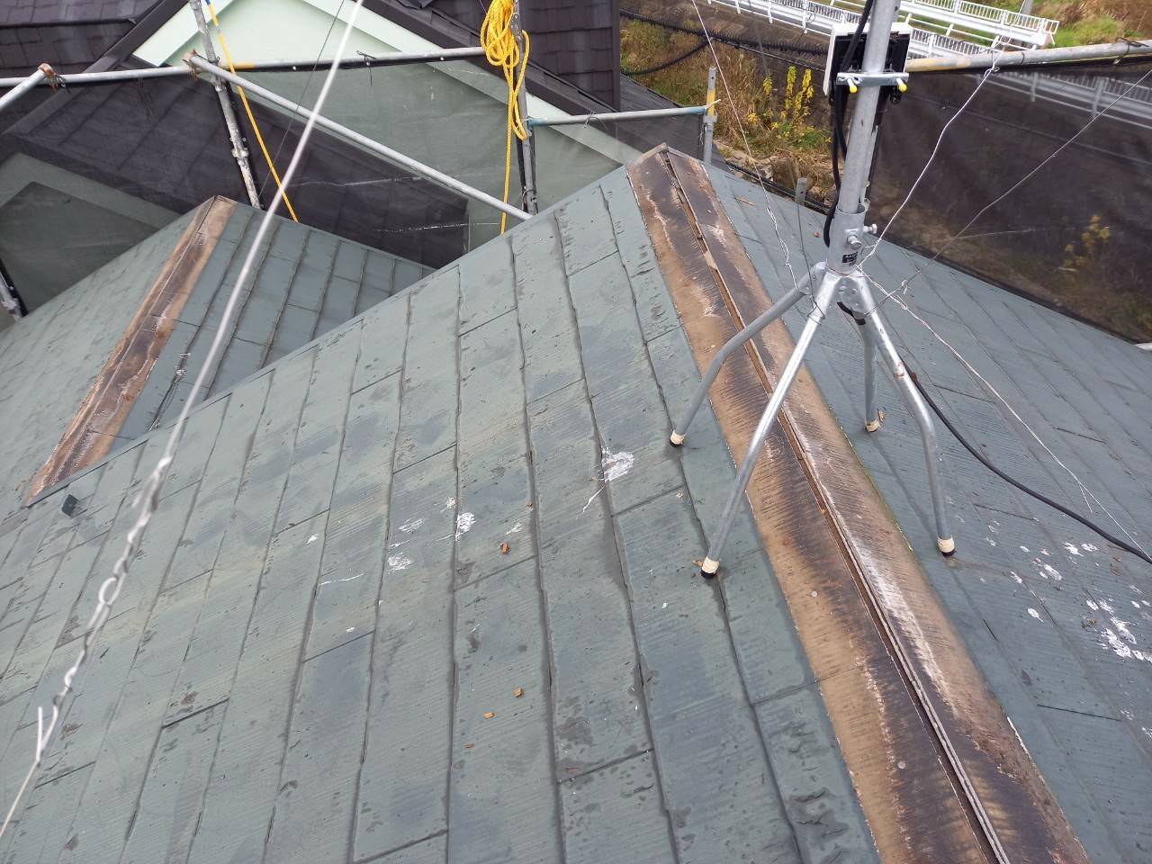 こちらは施工前の状態ですが、コロニアルの塗装が劣化して風化が始まっていました。