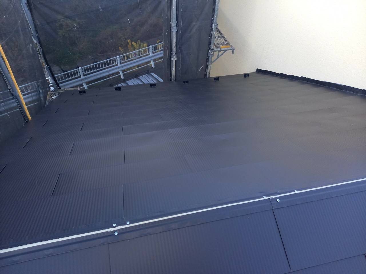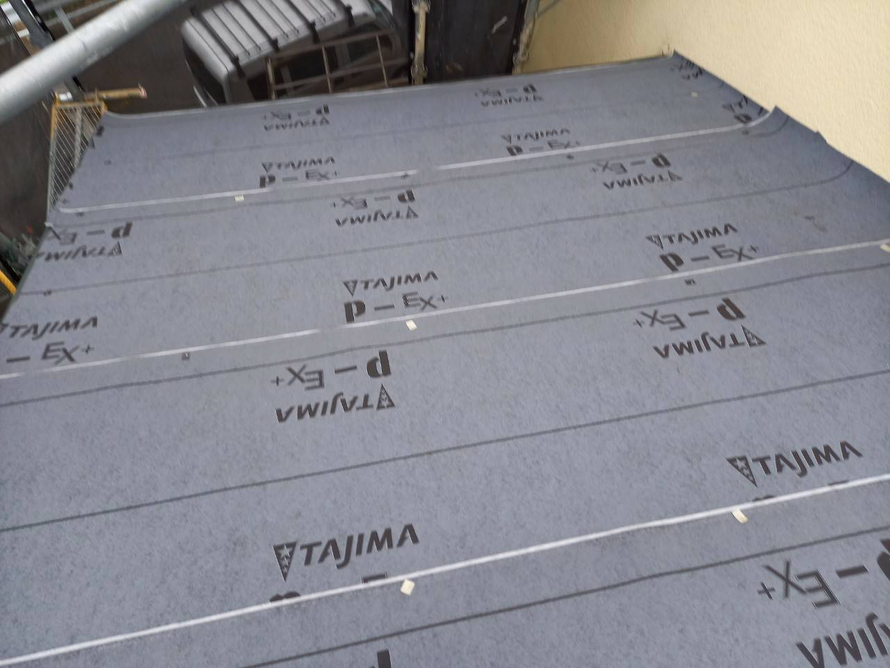 既存の屋根にゴムアスファルトシートをかぶせて雨漏りを防ぎます。