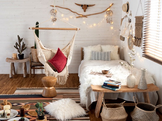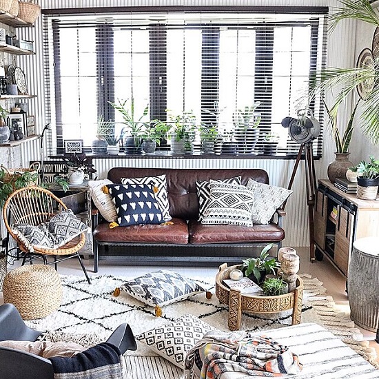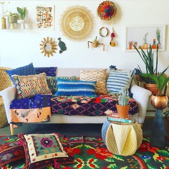 このインテリアスタイルでは、エスニック・エキゾチックで民族的なインテリアのボヘミアンと、