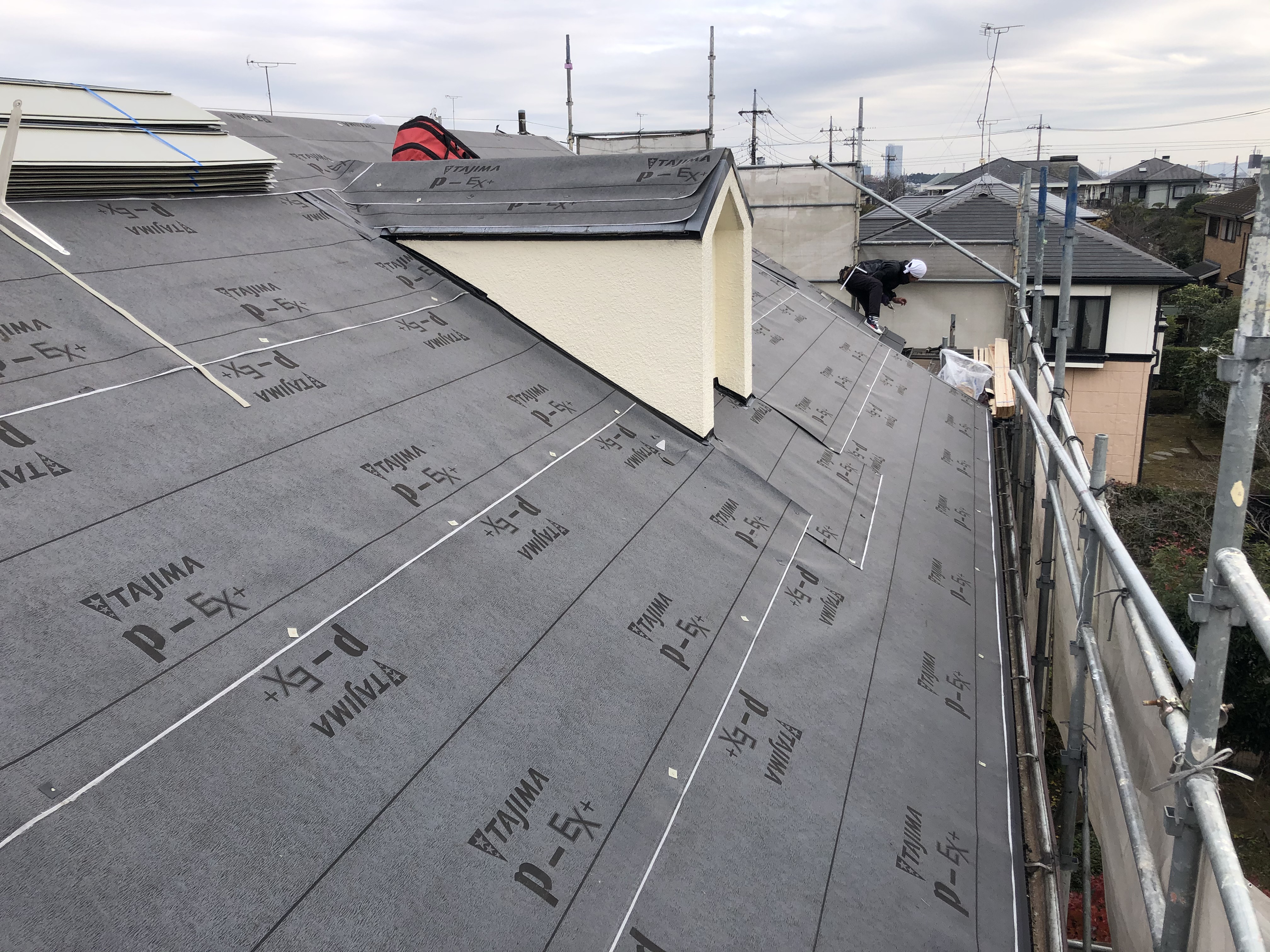 八王子市のK様邸屋根カバー工事はお天気にも恵まれ、順調に工事が進んでいます