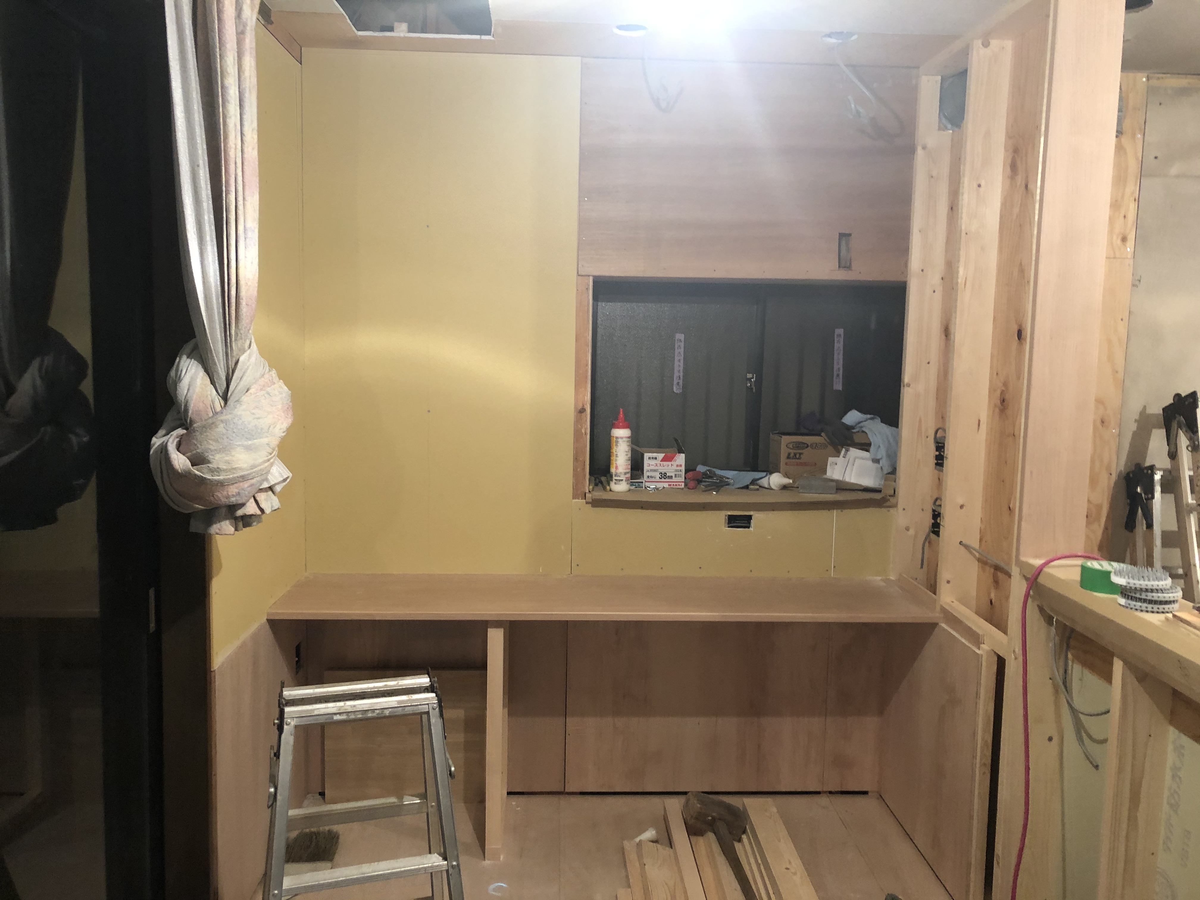 下地の作業が終わると、今度は床暖房やご主人様のワークスペースを造作していきます![]()