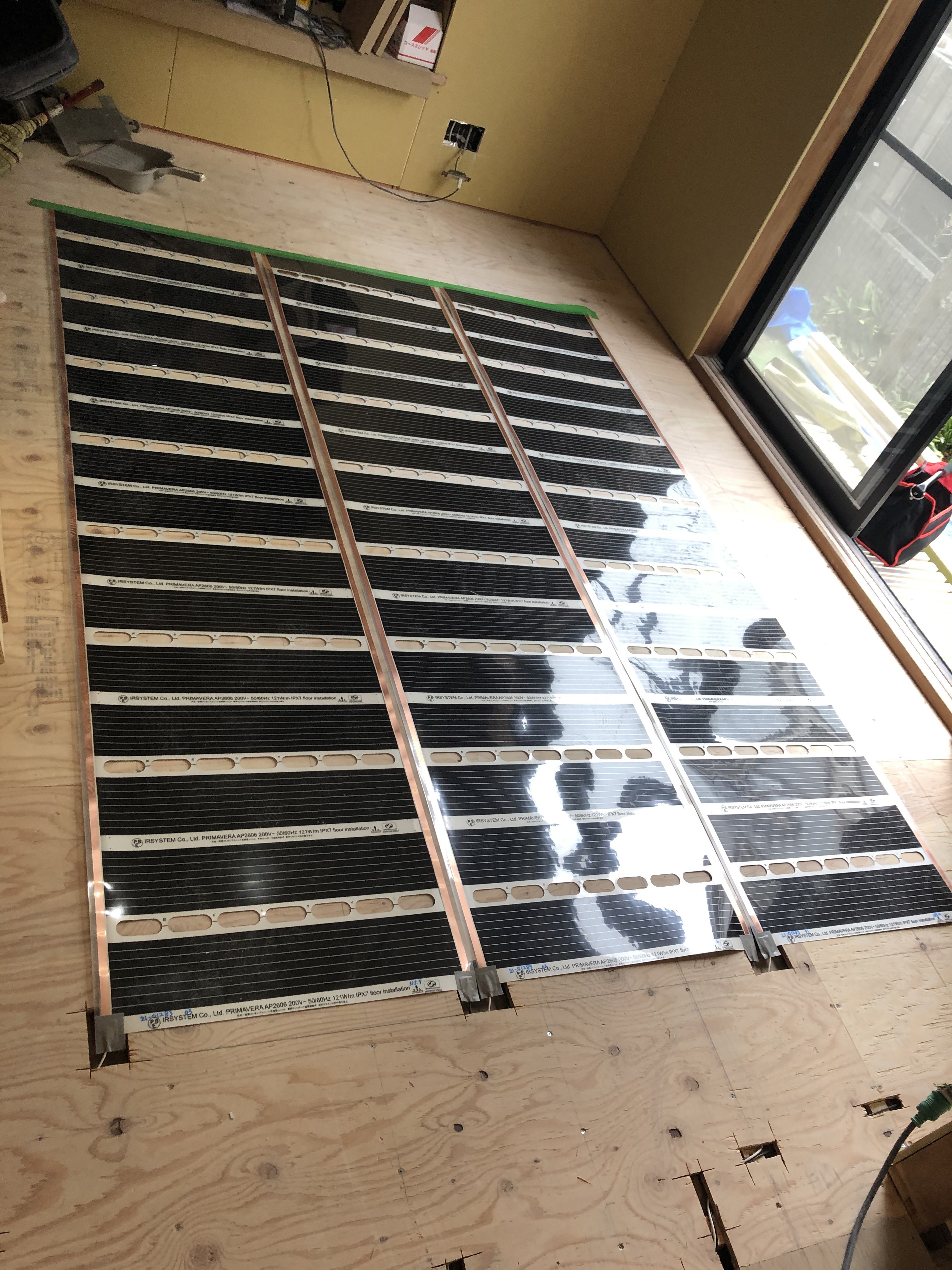 床暖房はダイニングとリビングの両方に敷き込みました![]()