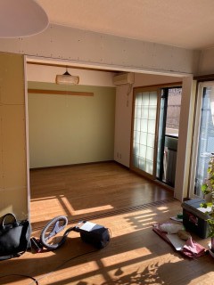 リビングと隣の旧和室を一体化する為右側の壁は解体して