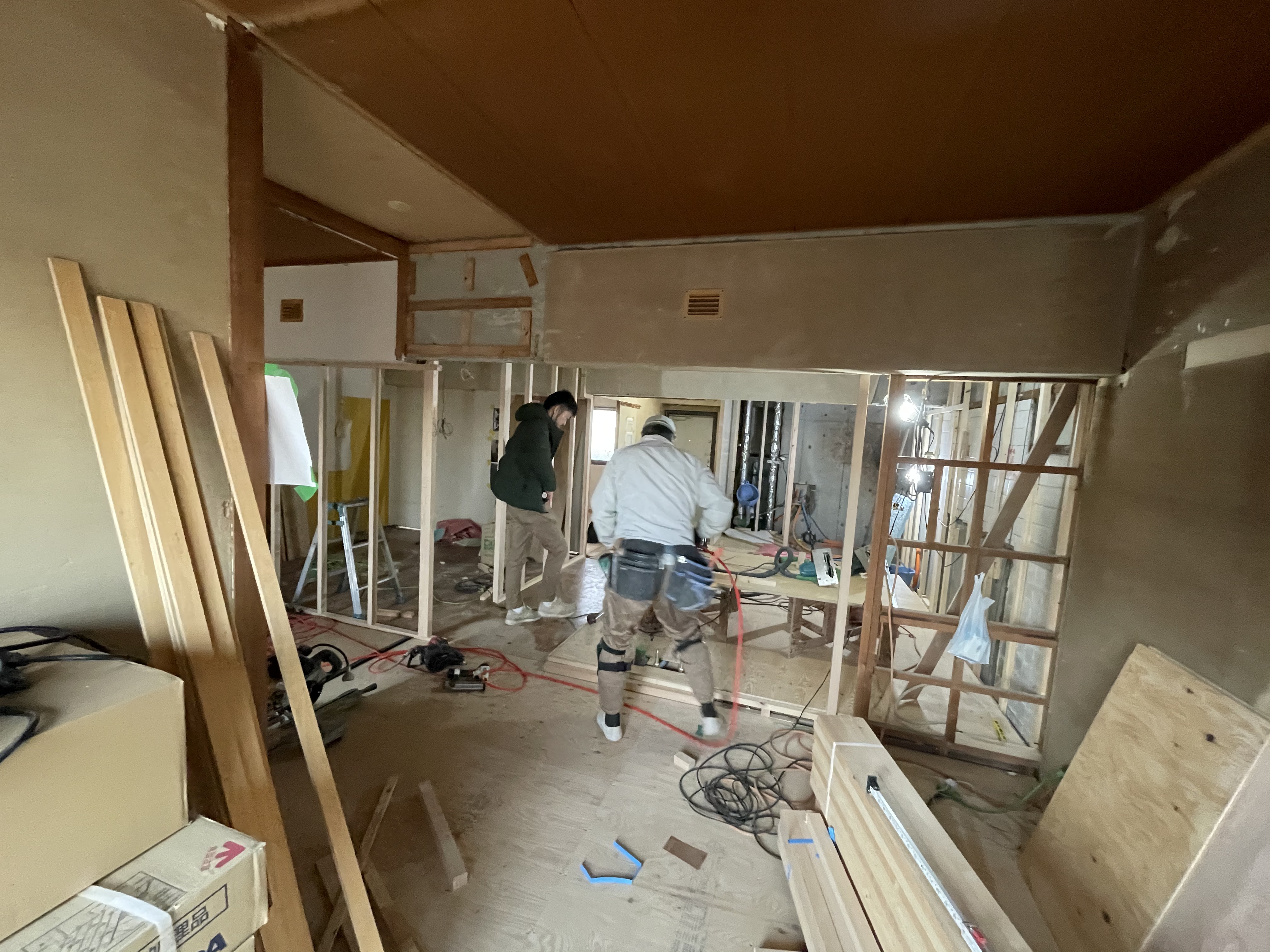 解体が無事におわりましたので、現在大工さんが新しい間取りを作ってくれています![]()