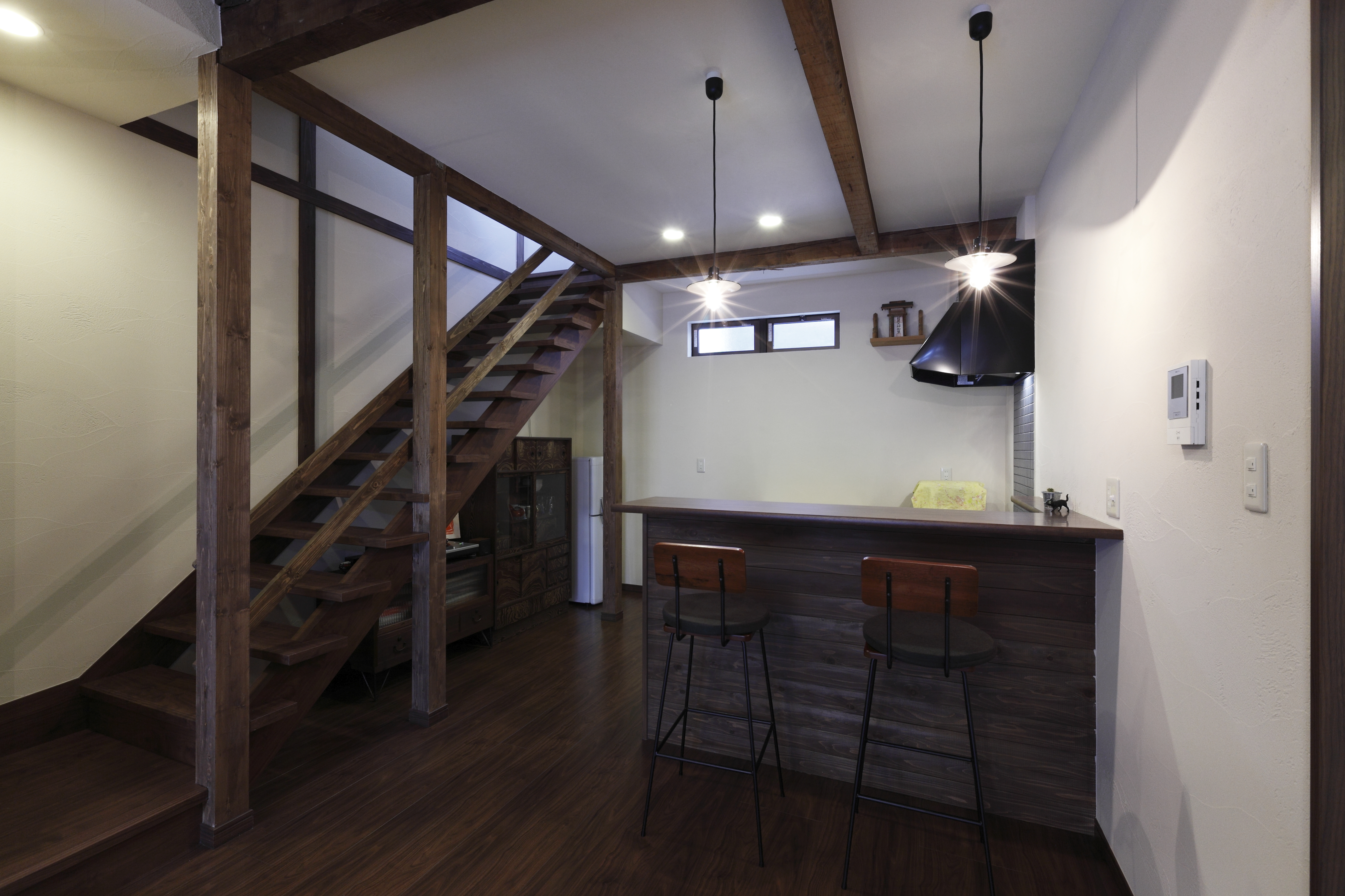 梁や他の部分の木材のお色を合わせることで空間に統一感が生まれます。