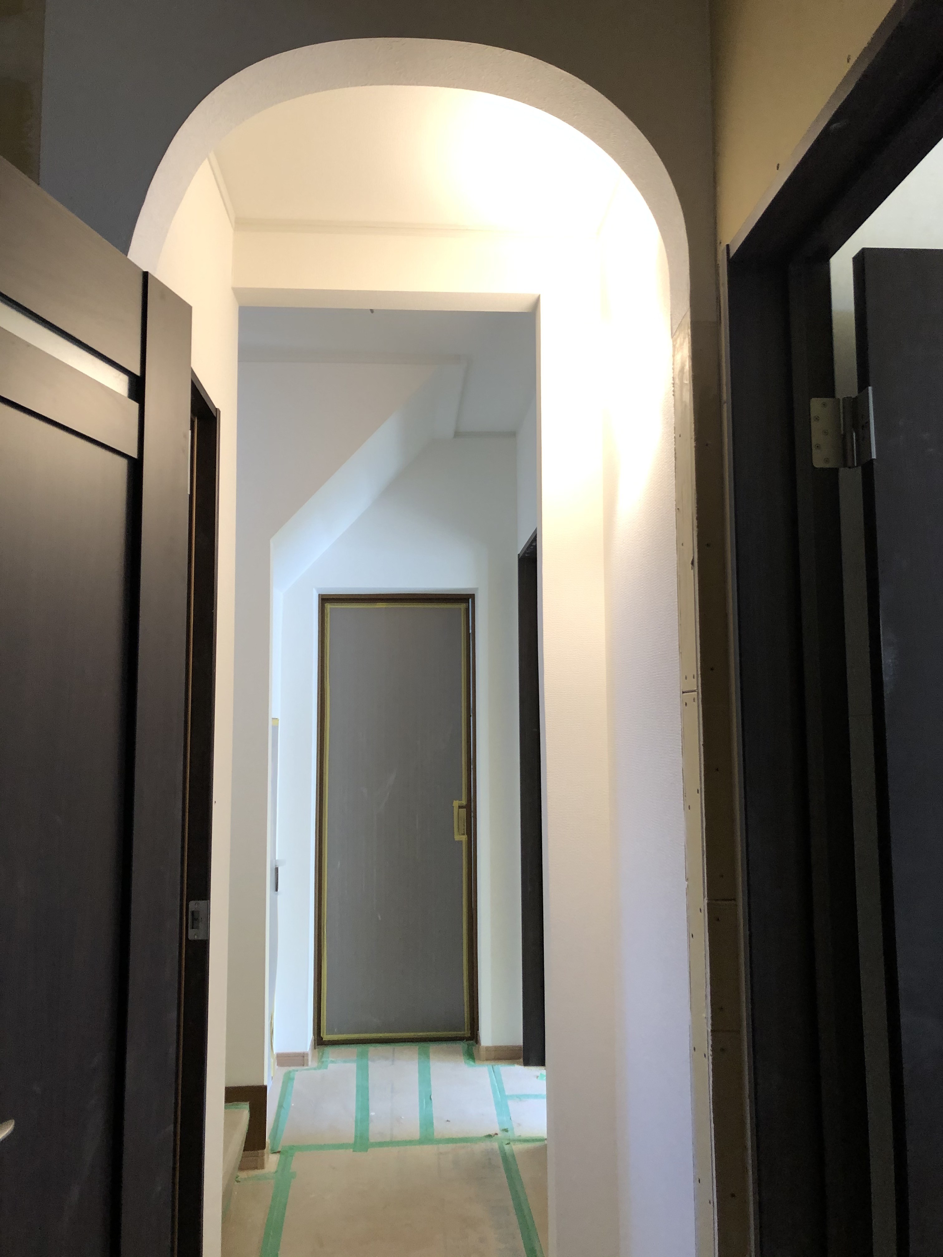 真っ白なスイスしっくい「カルクウォール」を塗って仕上げていきます