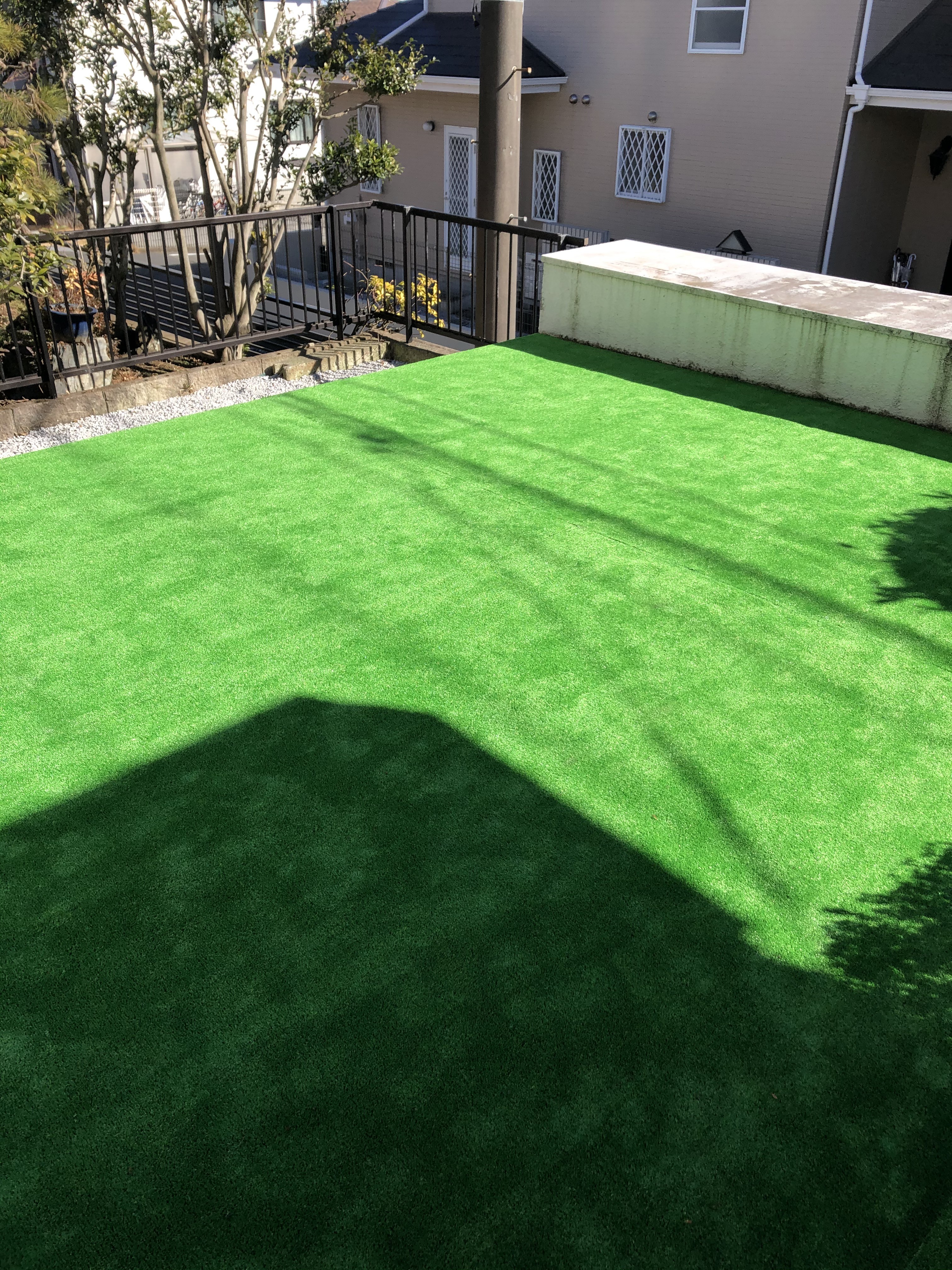 最後に車庫上のコンクリートに人工芝を貼って完成です