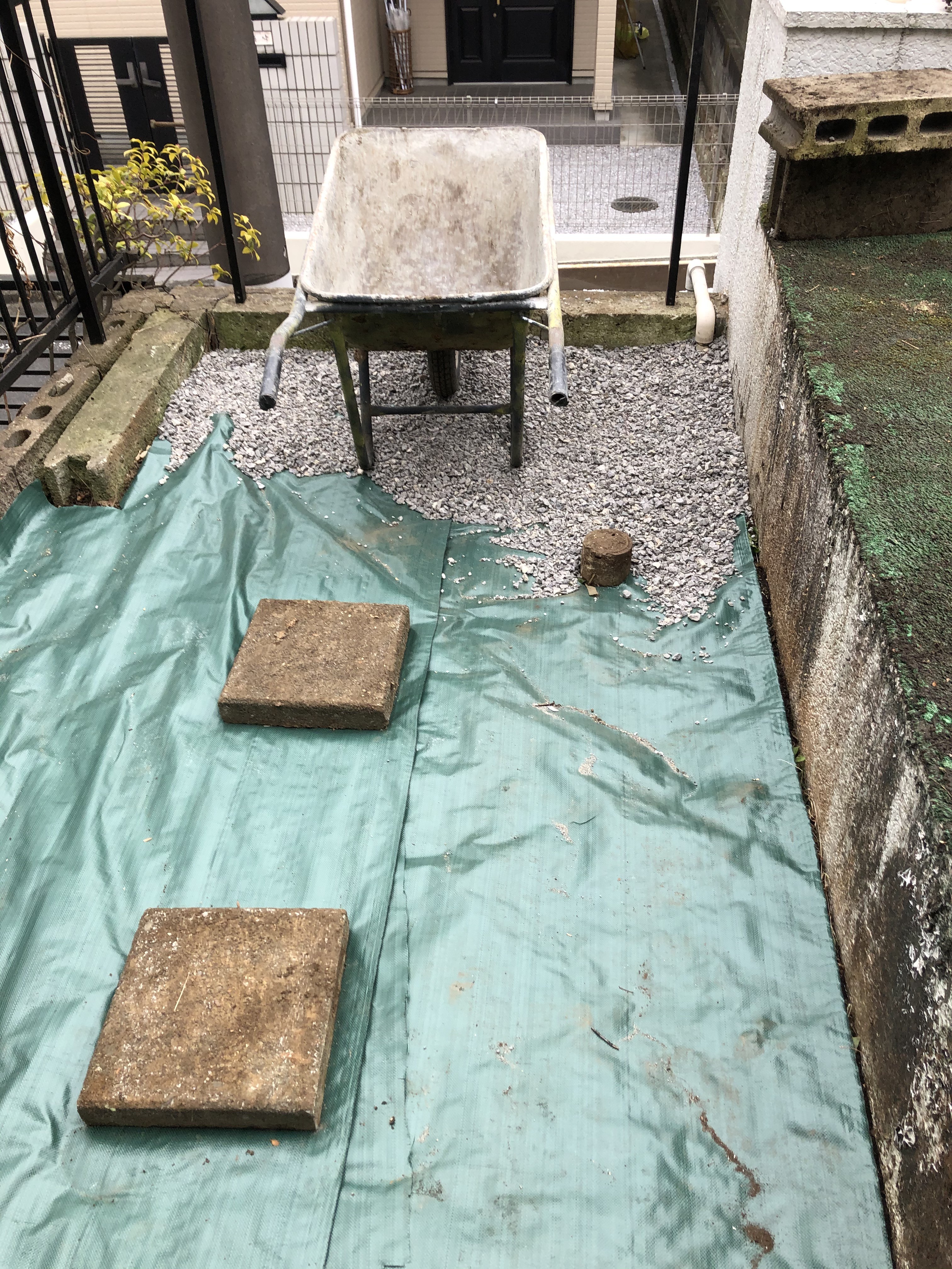 敷地が道路より高いので、ネコ(台車)で何度も往復して職人さんが頑張ってくれました。