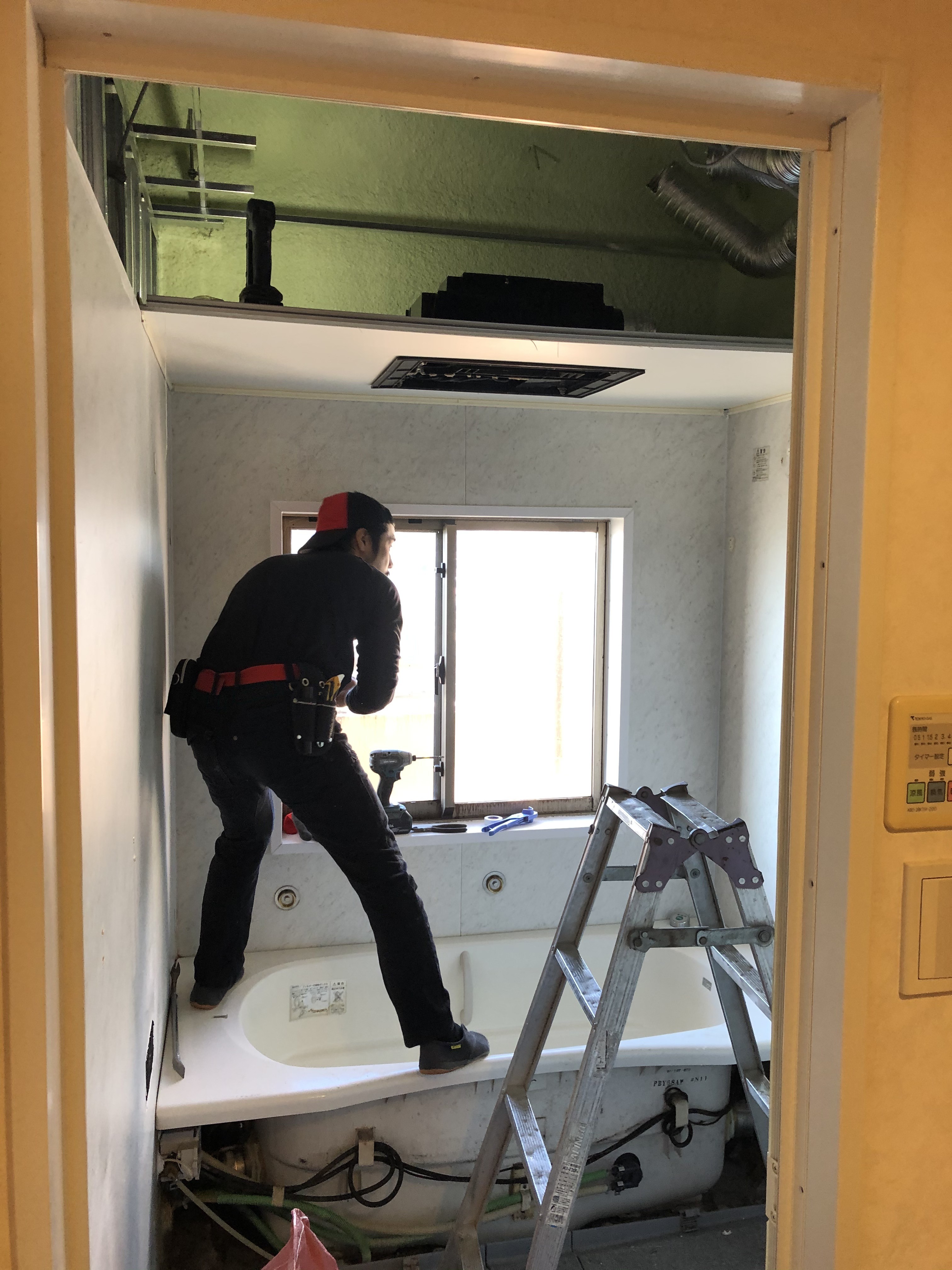 養生が終わったので、さっそく浴室の解体が始まりました。