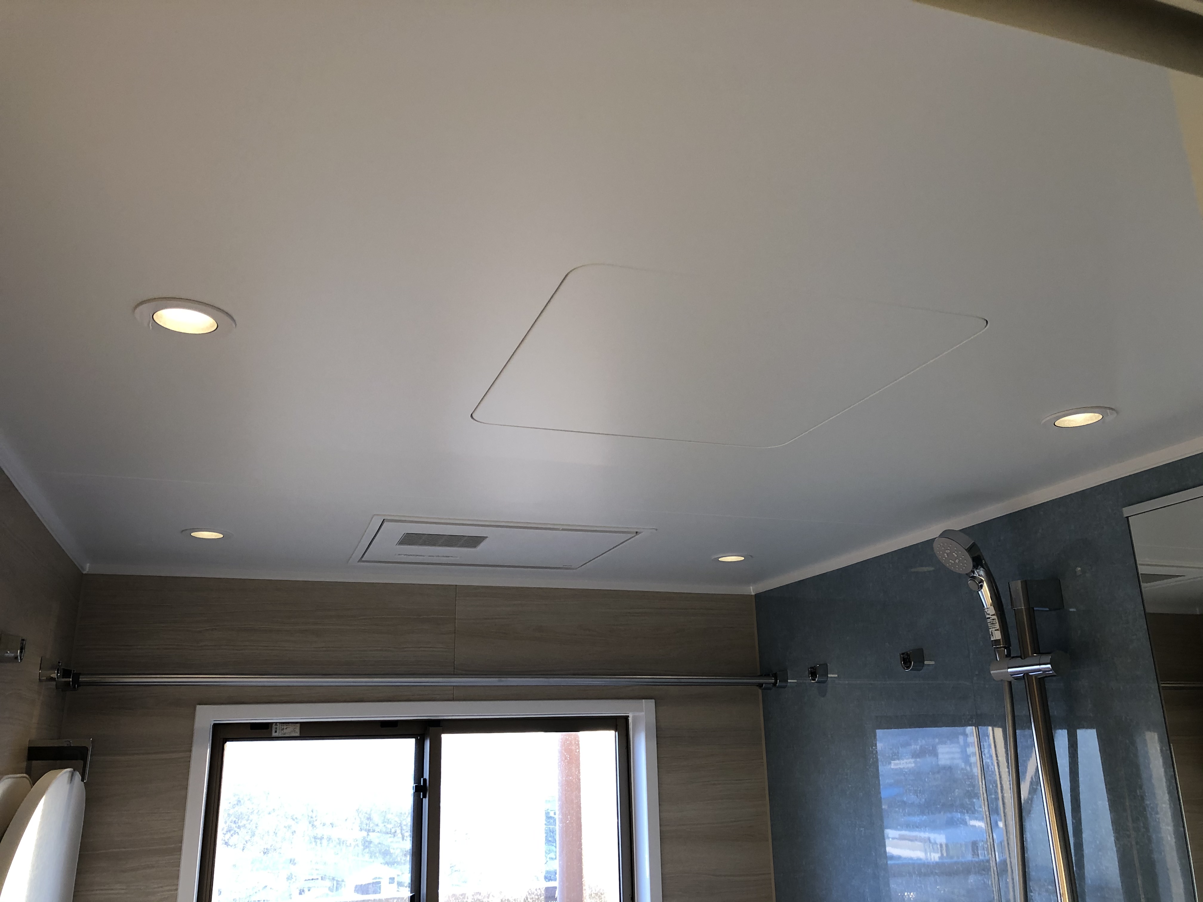 天井にはダウンライトが4灯と、浴室暖房換気乾燥機が付いています。