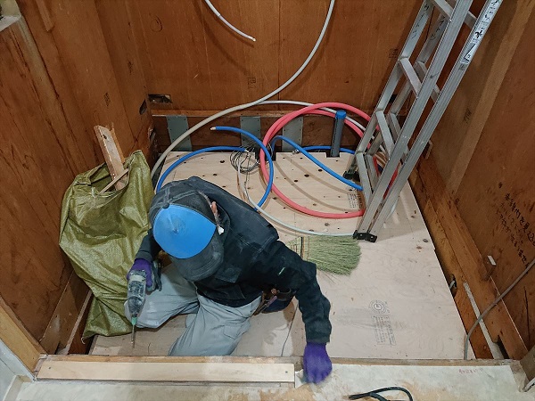 水廻り設備の設置が完了後は、施工箇所や搬入経路のお掃除をして、工事終了。