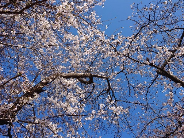 近所に大きな桜の木があるのですが、八分咲きとなってました![]()