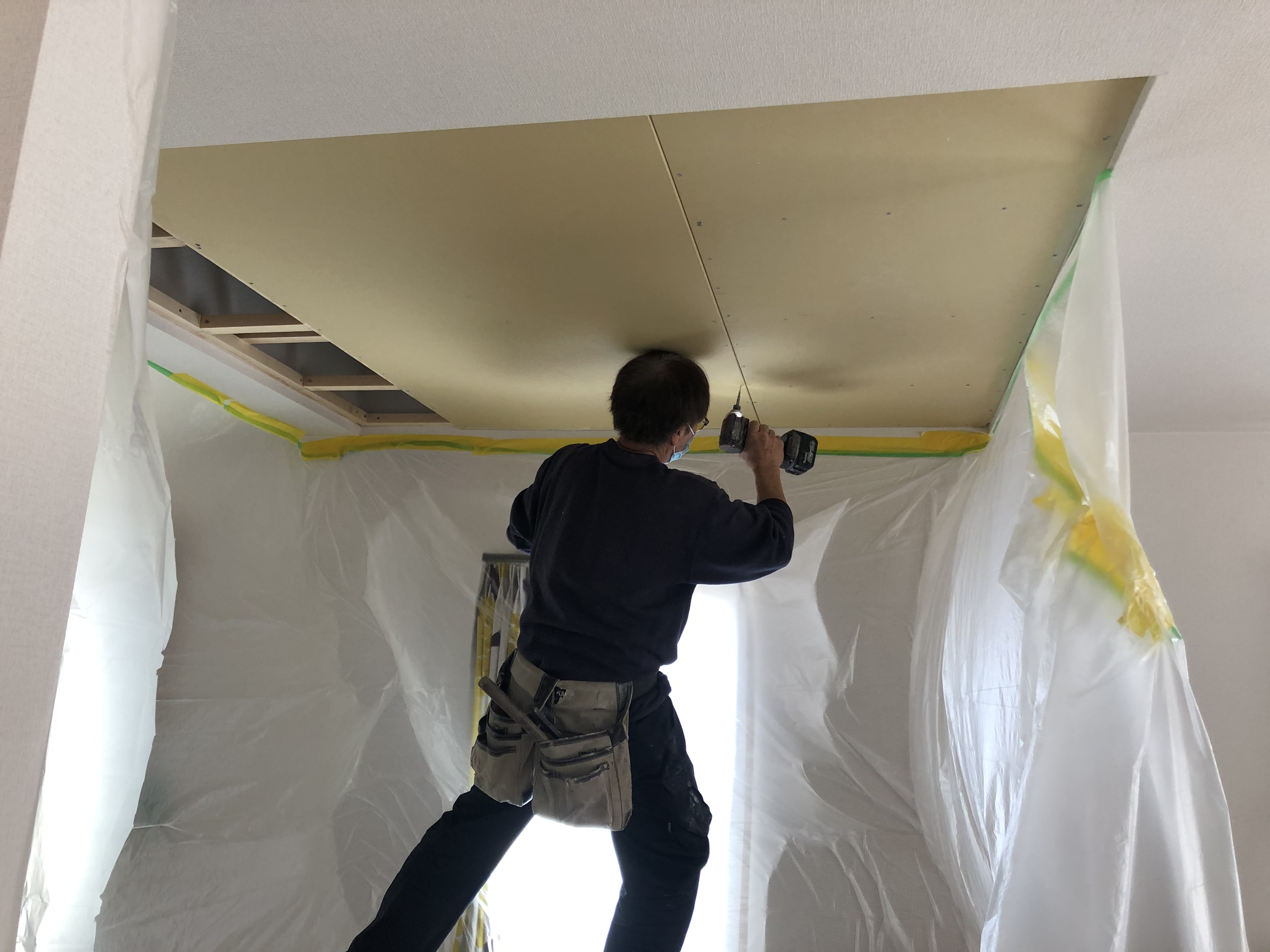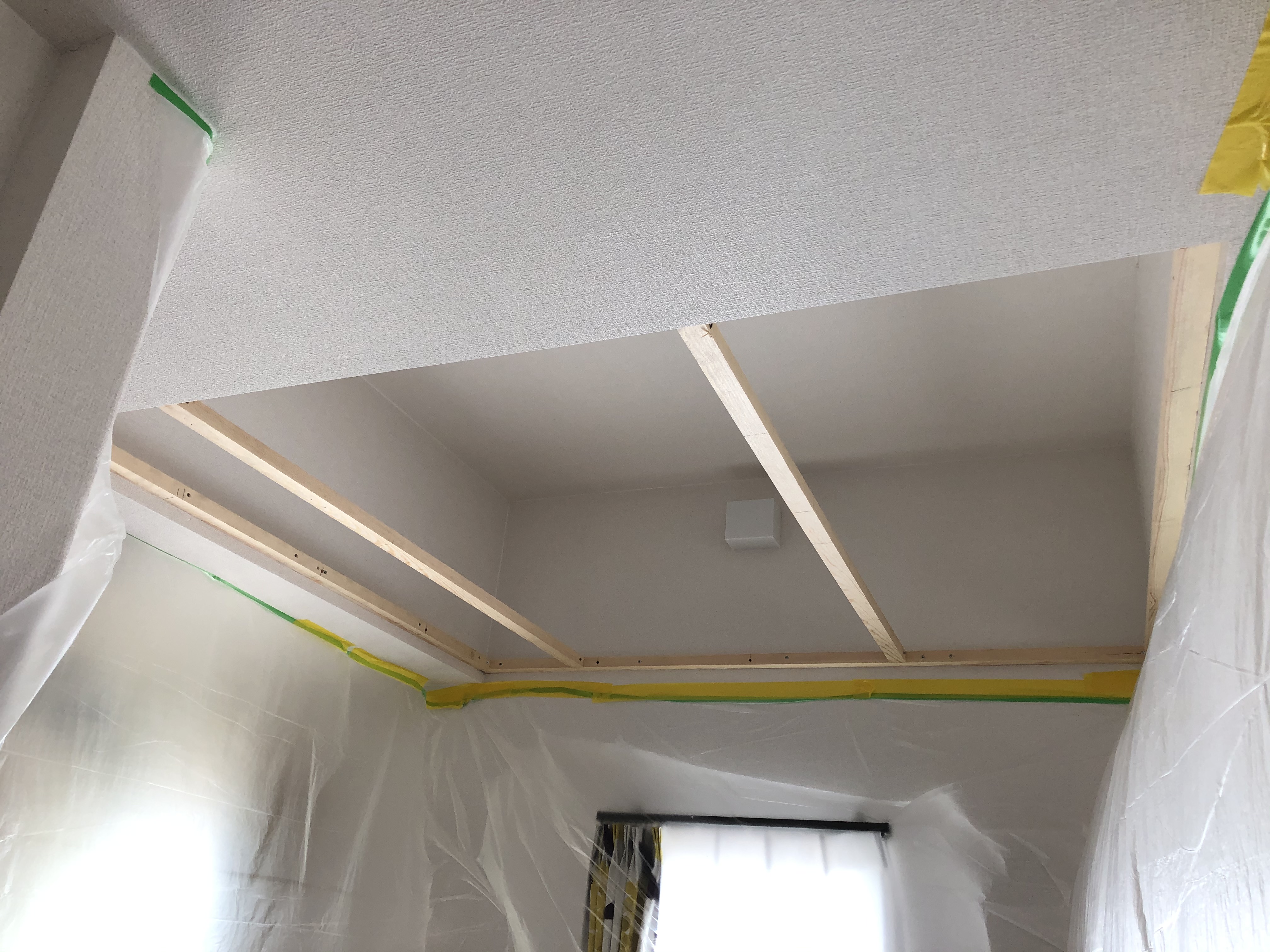 そしてリフォームが始まり、まず1階の天井をふさいでいきます。