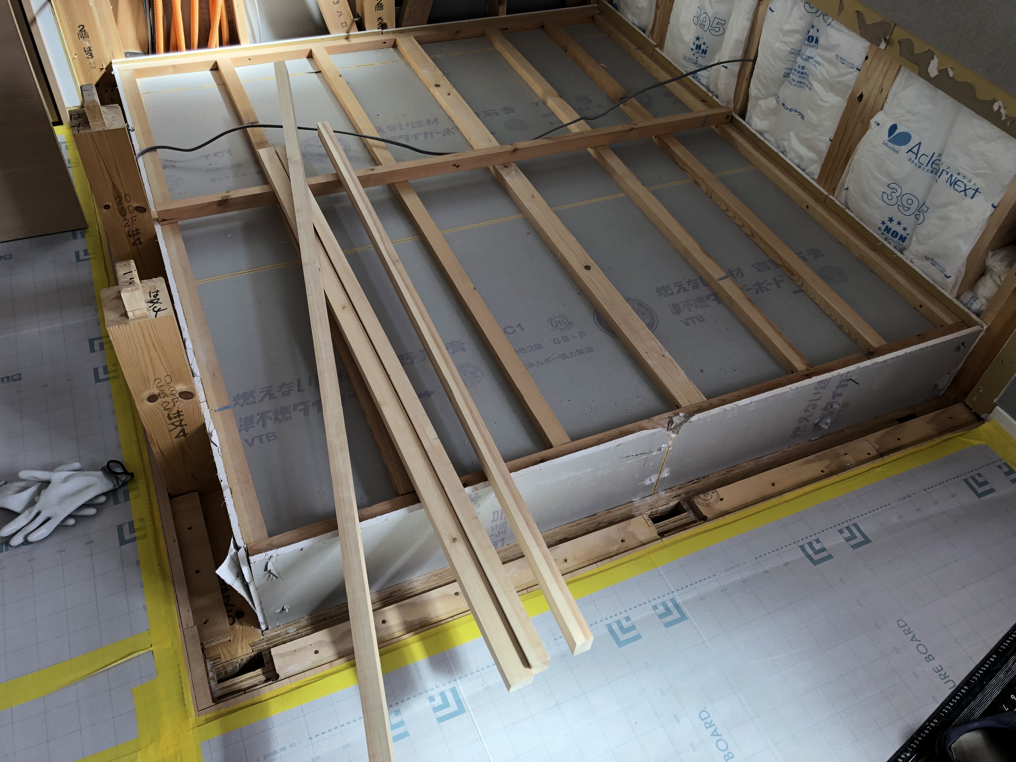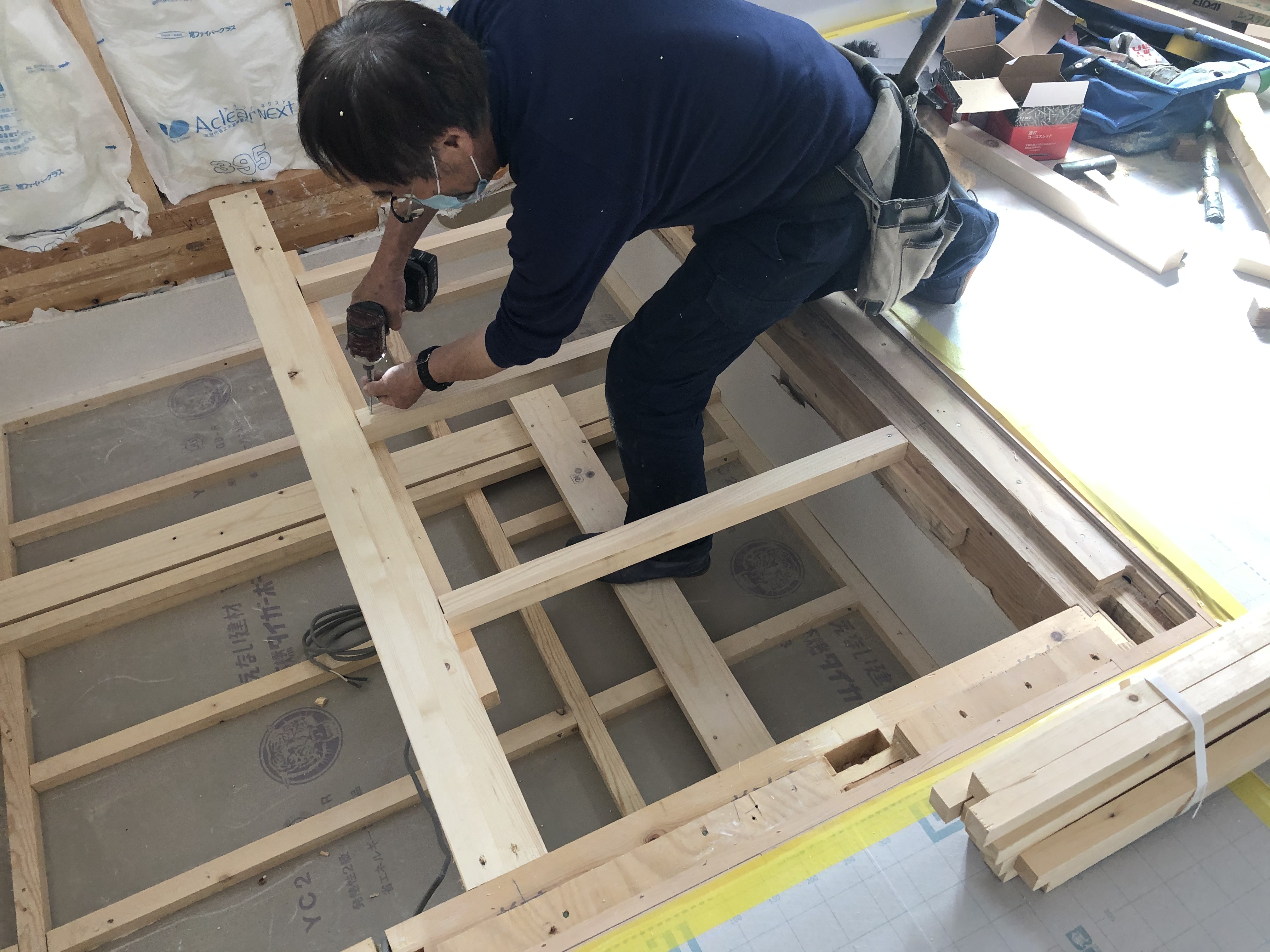 そして回りと同じ高さになるように、床の下地を組んでいきます。