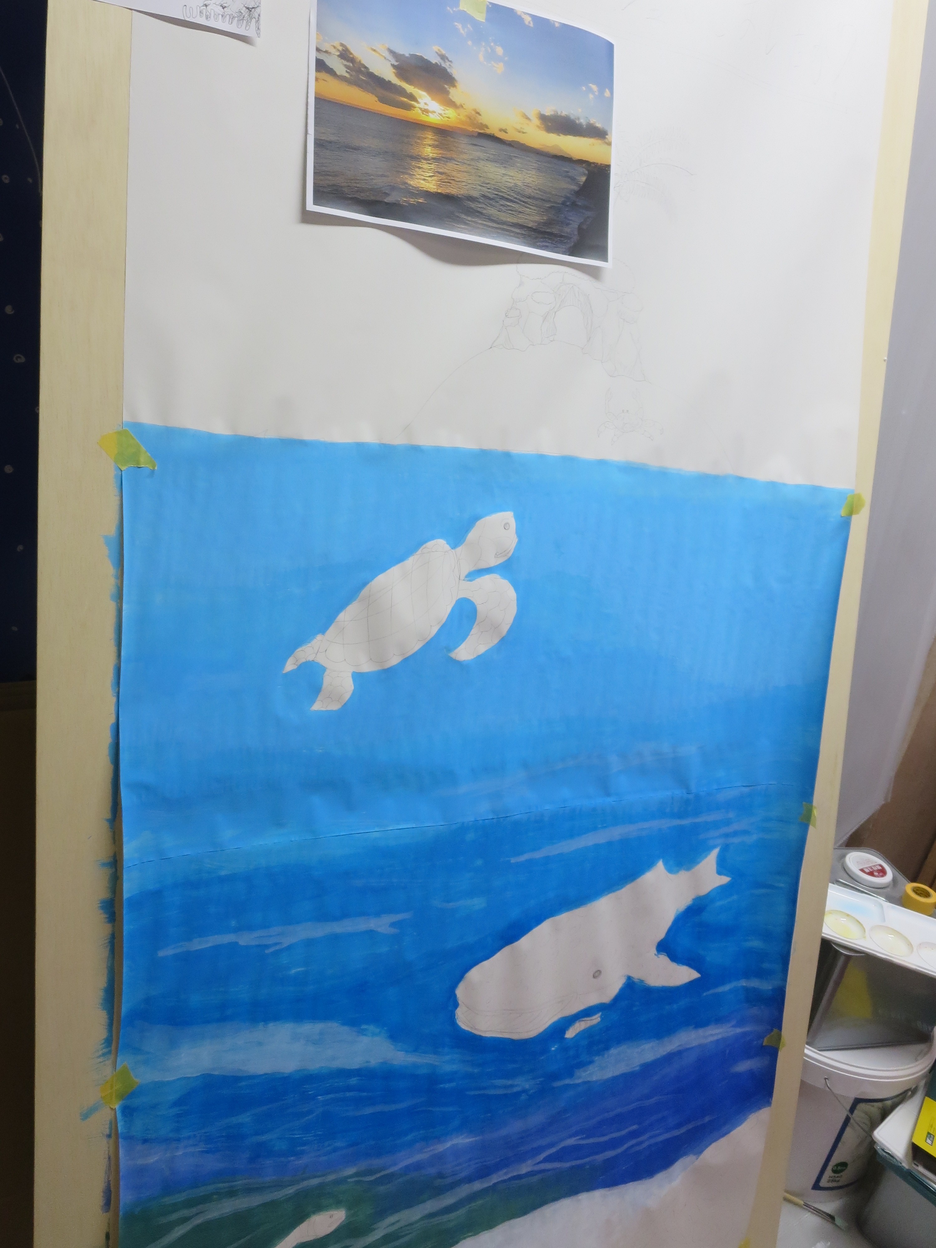 リフォーム祭の準備で、八王子店監督の成川画伯が何やら絵を描いています。
