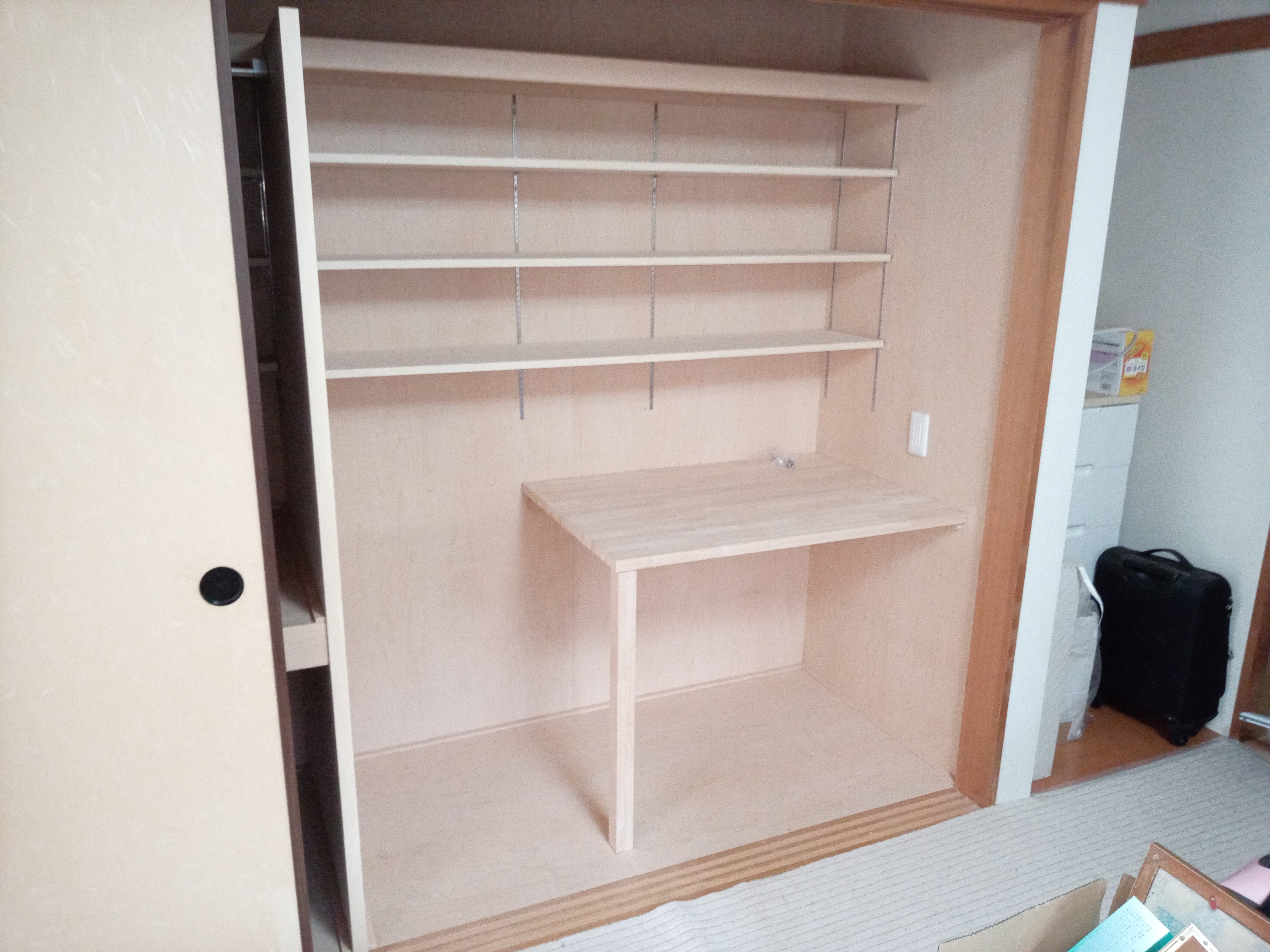 “押入の中段を半分撤去してデスクを設けたい“と言う内容です。
