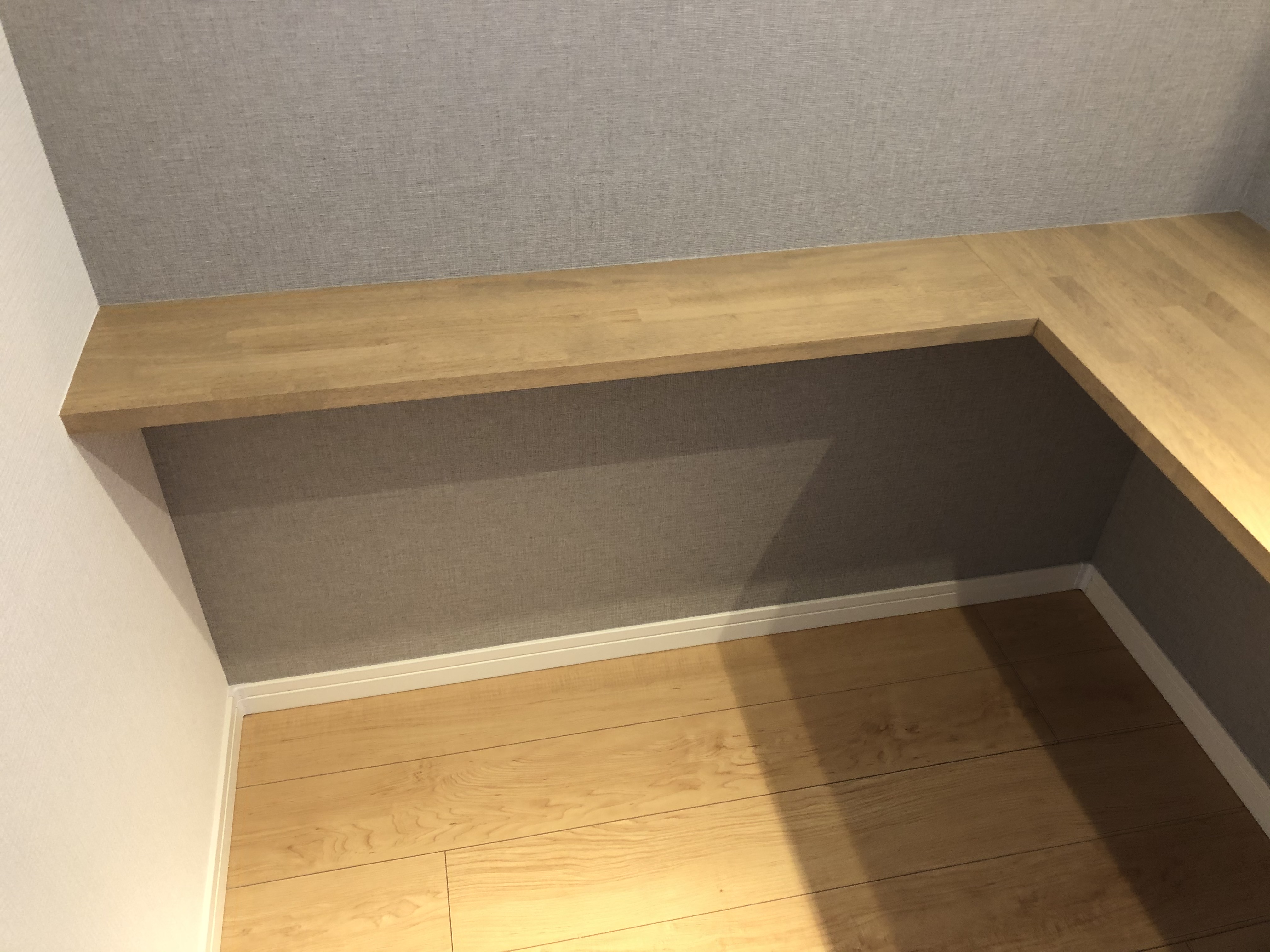 一般的な机と同じ70cmの高さに造作カウンターを設置して、コンセントや照明を付けました。