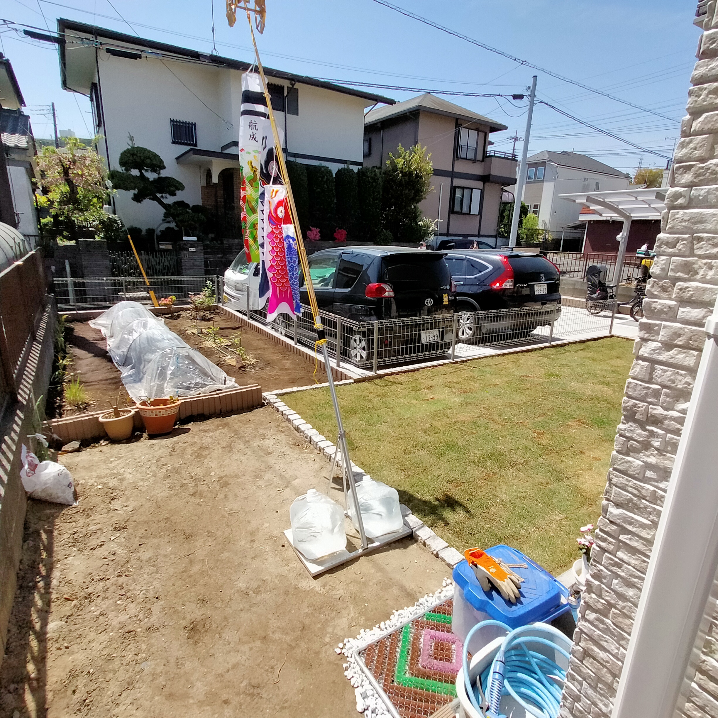 お庭には高麗芝を植え、お孫さんが裸足で走り回ったりゴロゴロしたりが楽しめそうです![]()