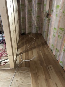 根太に構造用合板を貼ってから、フローリングを貼っています。(二重貼り)