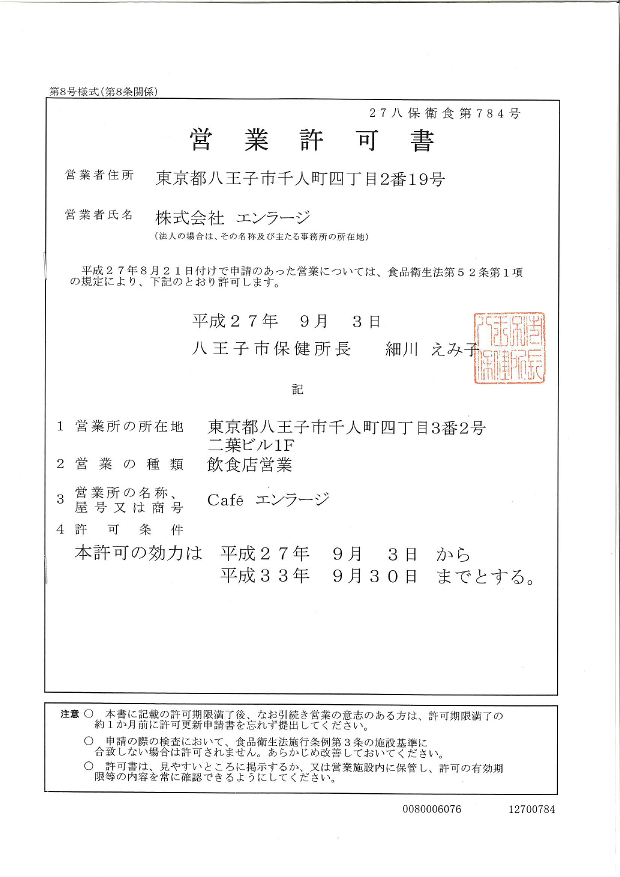 当社では各種営業許可の取得もお手伝いしておりますので、
