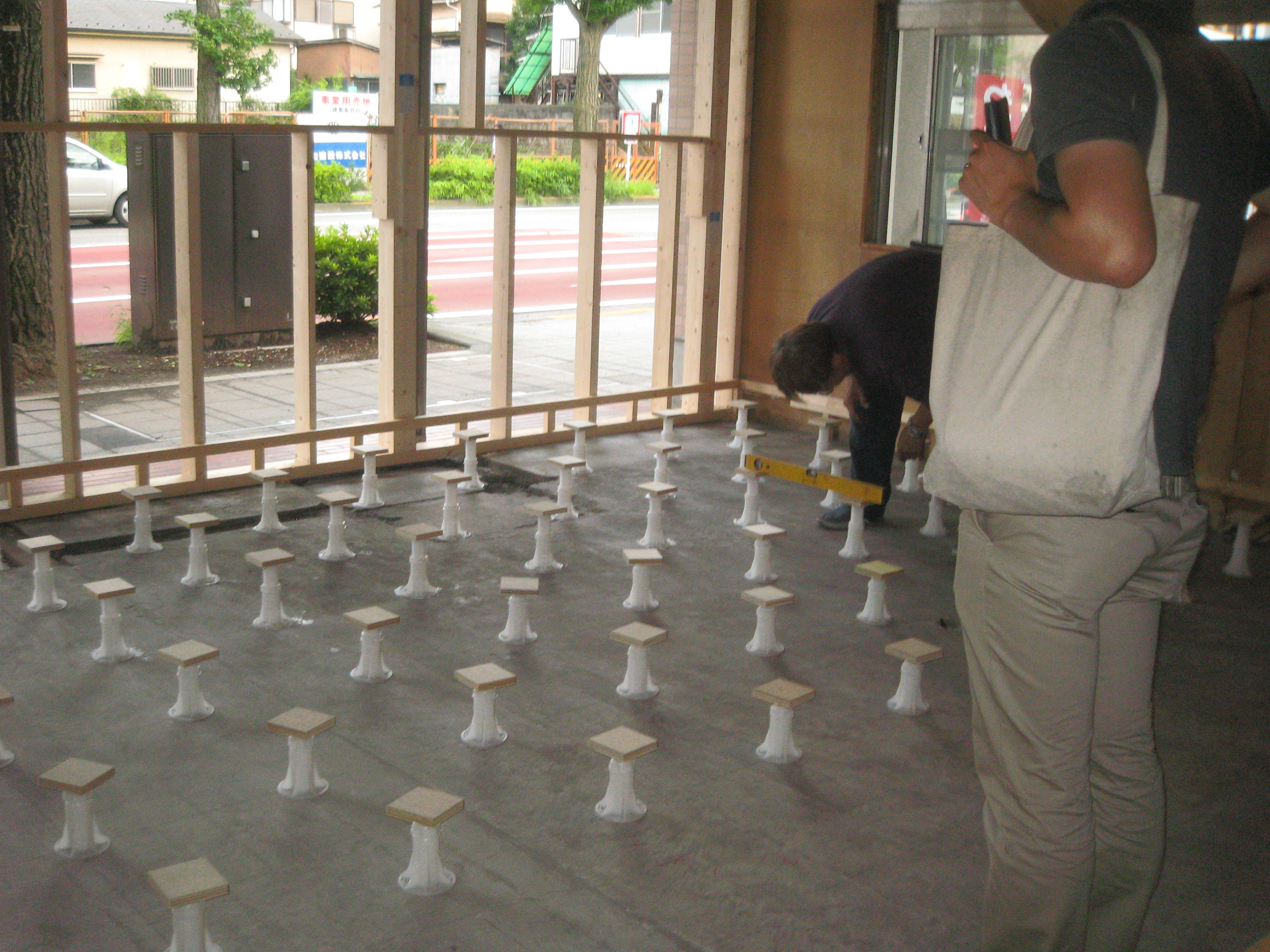 大工さんが床の下地を作っている所です。床は約20cm上げました。