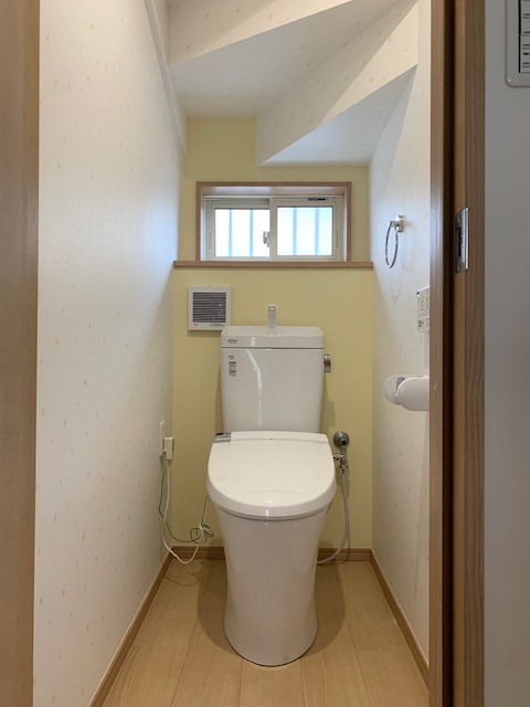 1階のトイレは階段下にあり、新しく掛け替えた階段は勾配が緩やかなので