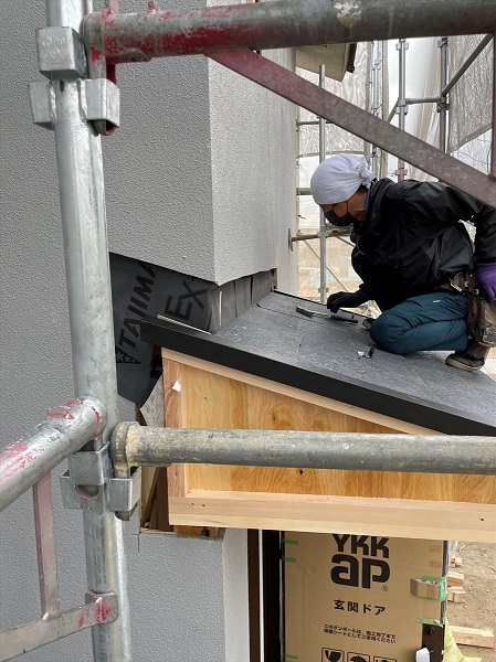 玄関位置の移動にともない、玄関屋根を新規で造作します。