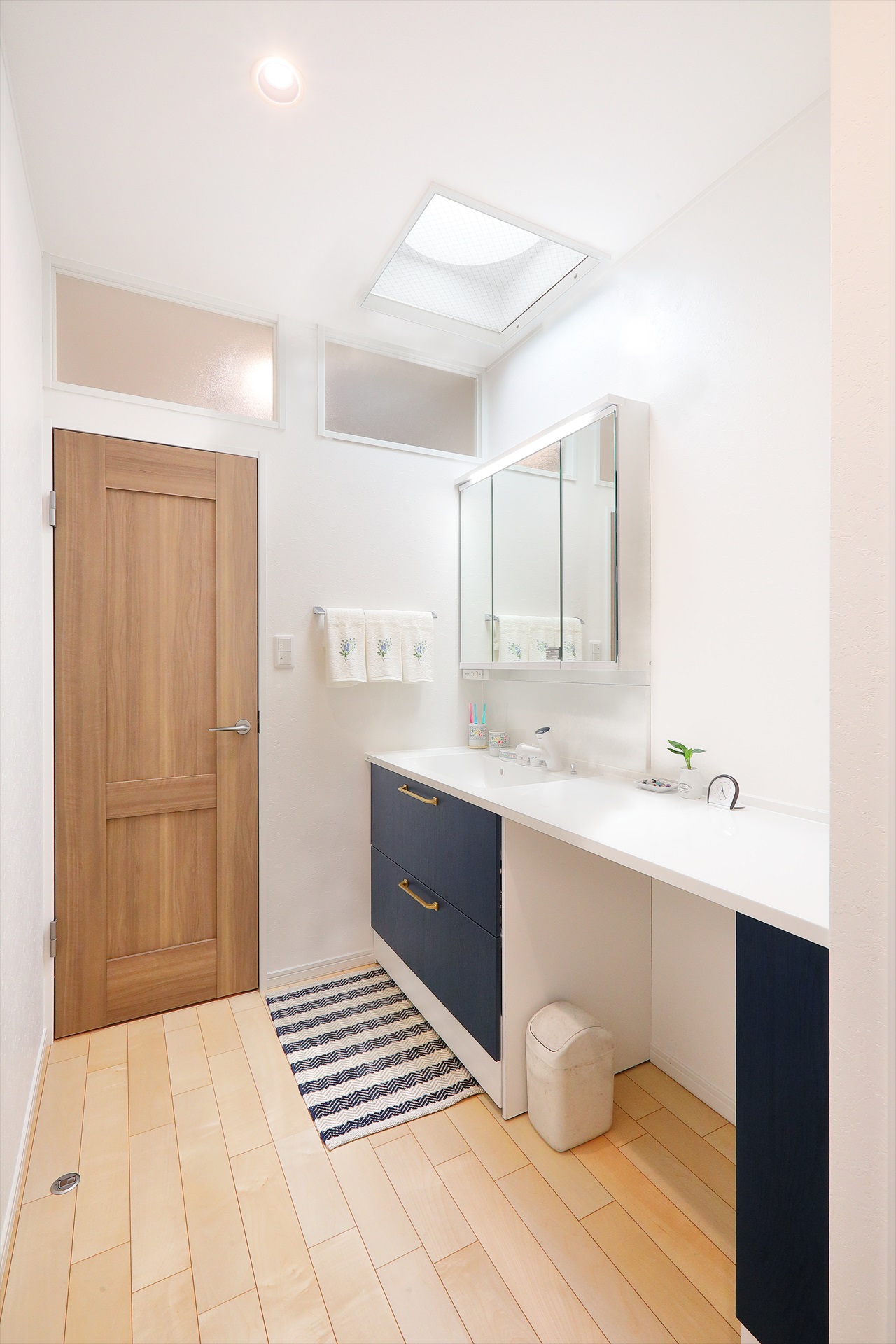 1階の洗面所には、奥様とデザイン担当のこだわりを盛り込み、