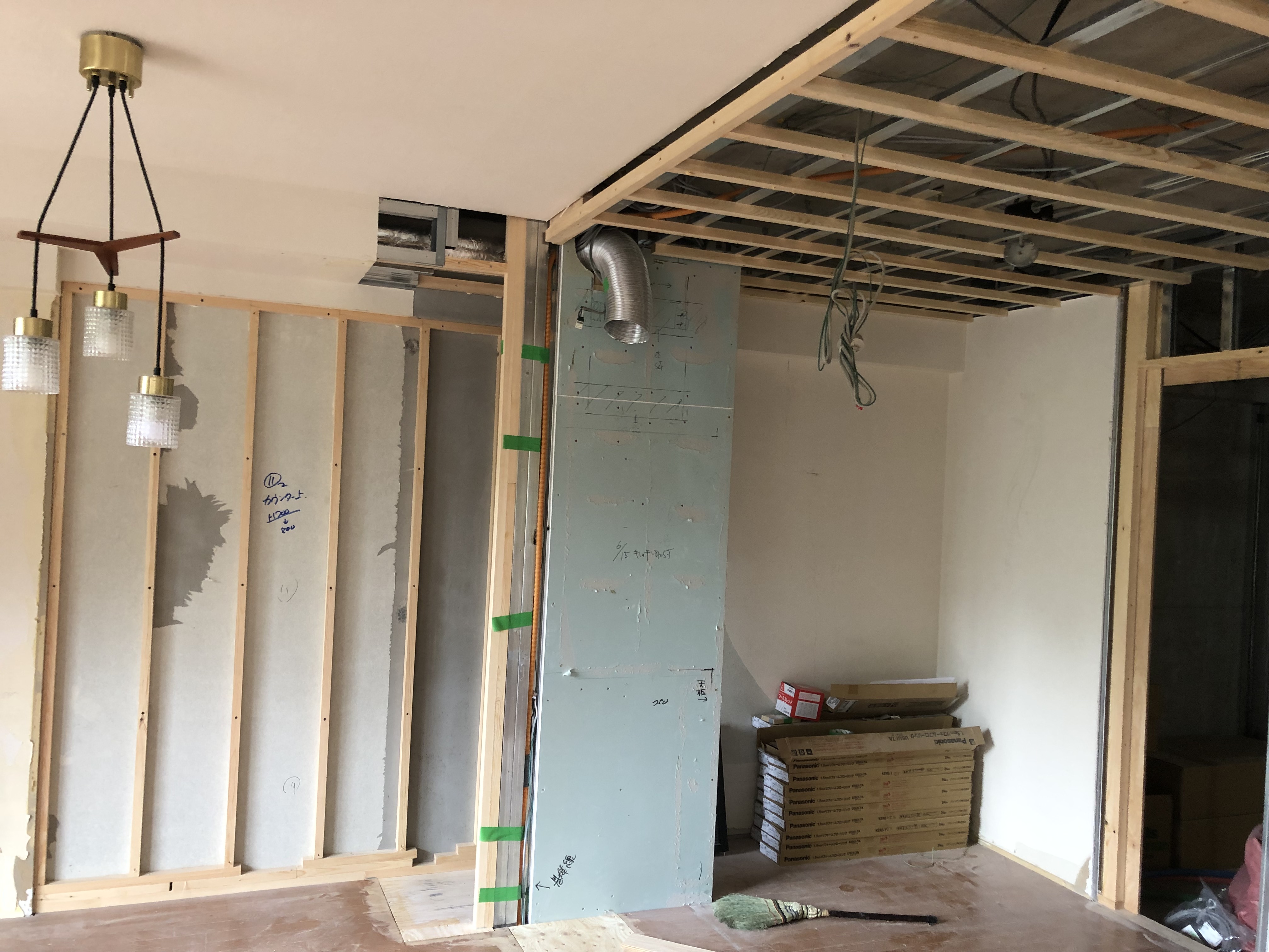 キッチンや壁を取り払い、オープンなフラット対面キッチンを入れる予定です。