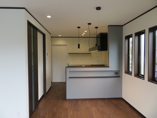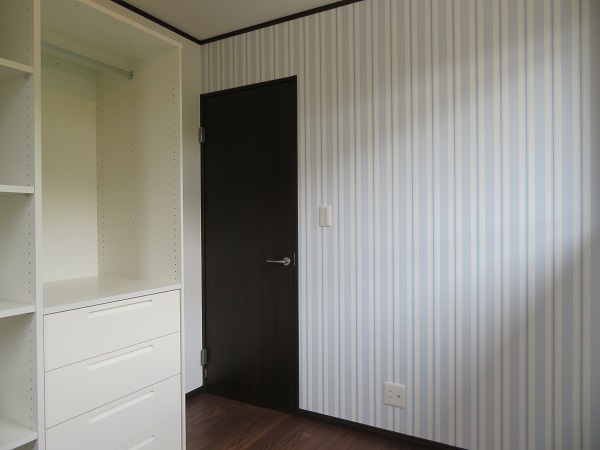 アクセントクロスでおしゃれな内装にしつつ、視覚効果で広く感じられるようにしました。