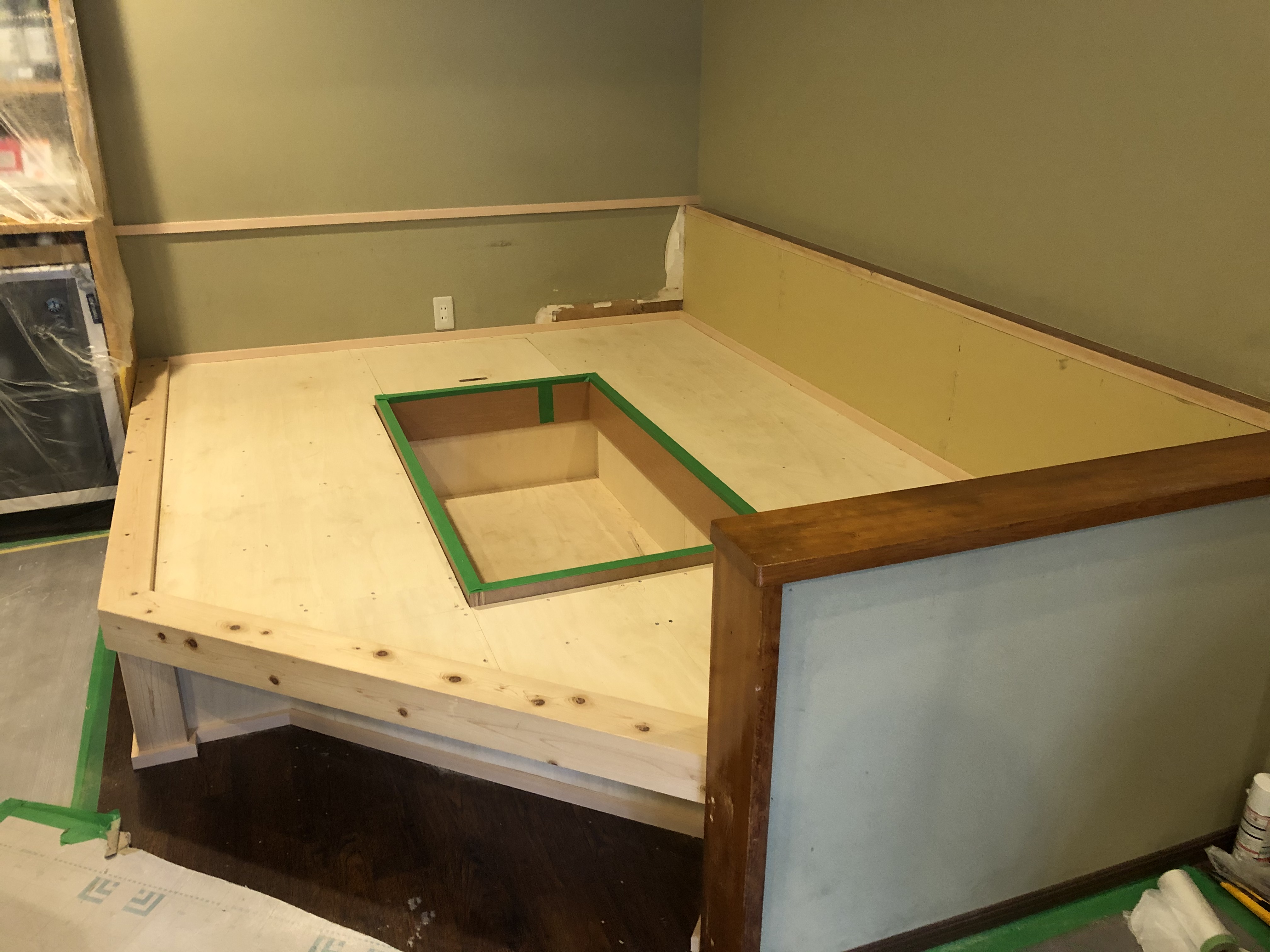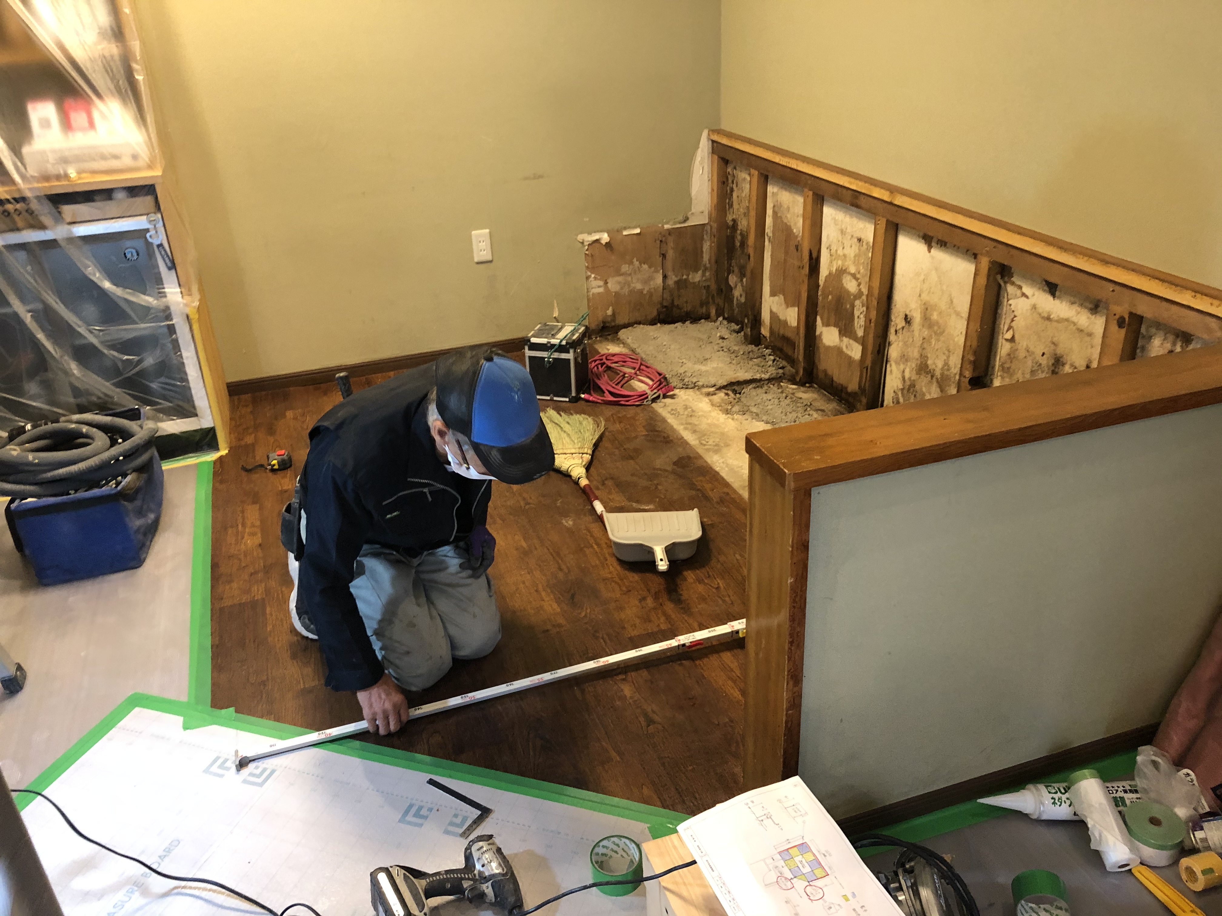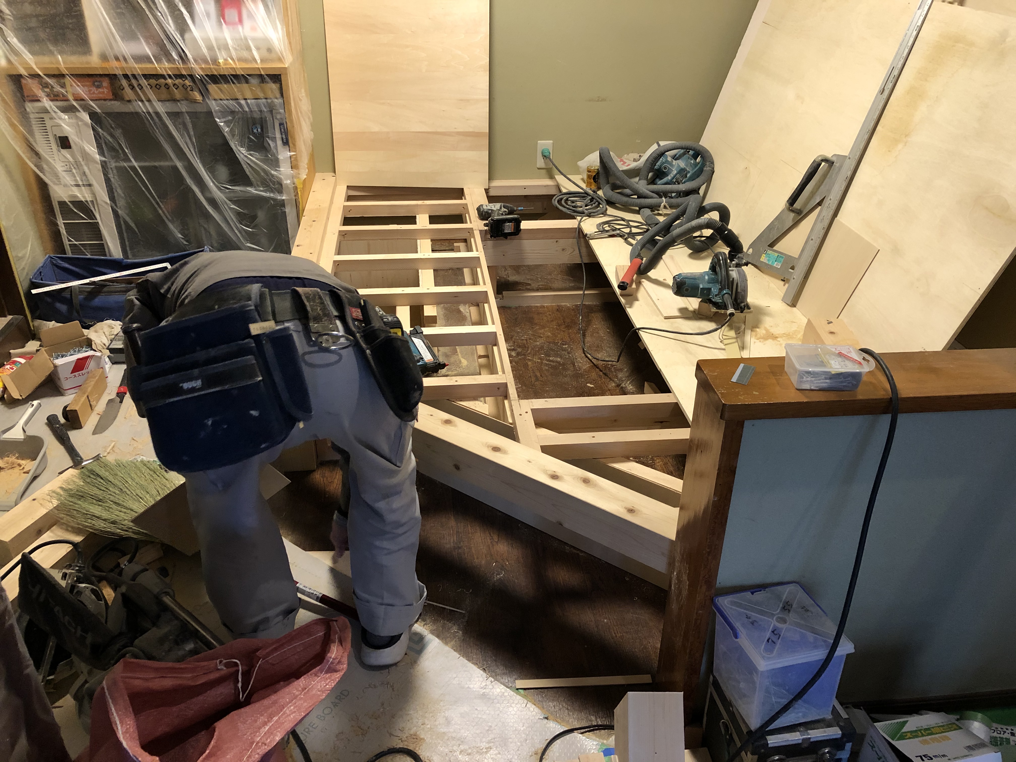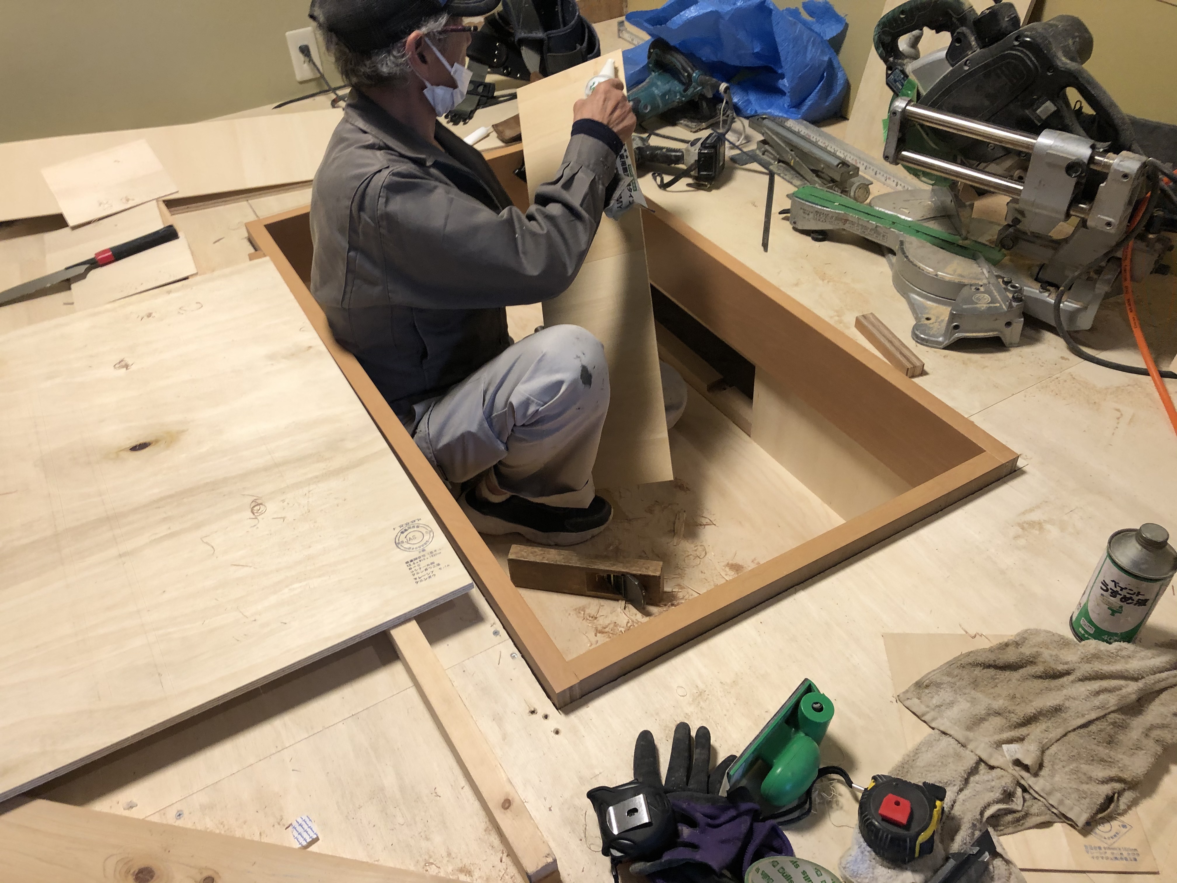 掘りごたつ仕様の為、大工さんが丁寧に掘りごたつを造作中・・・