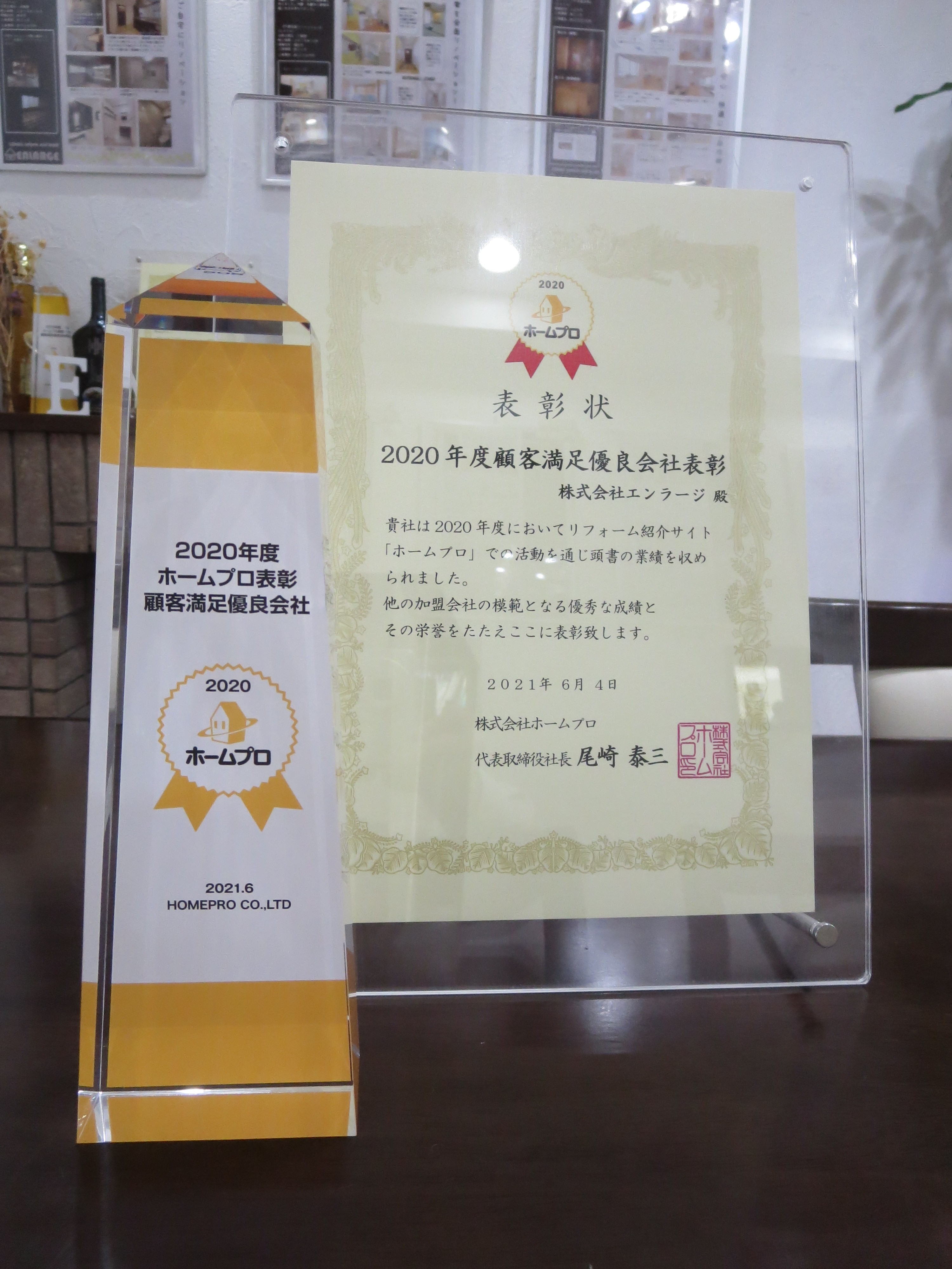 2020年度ホームプロ『顧客満足優良会社』を受賞しました!