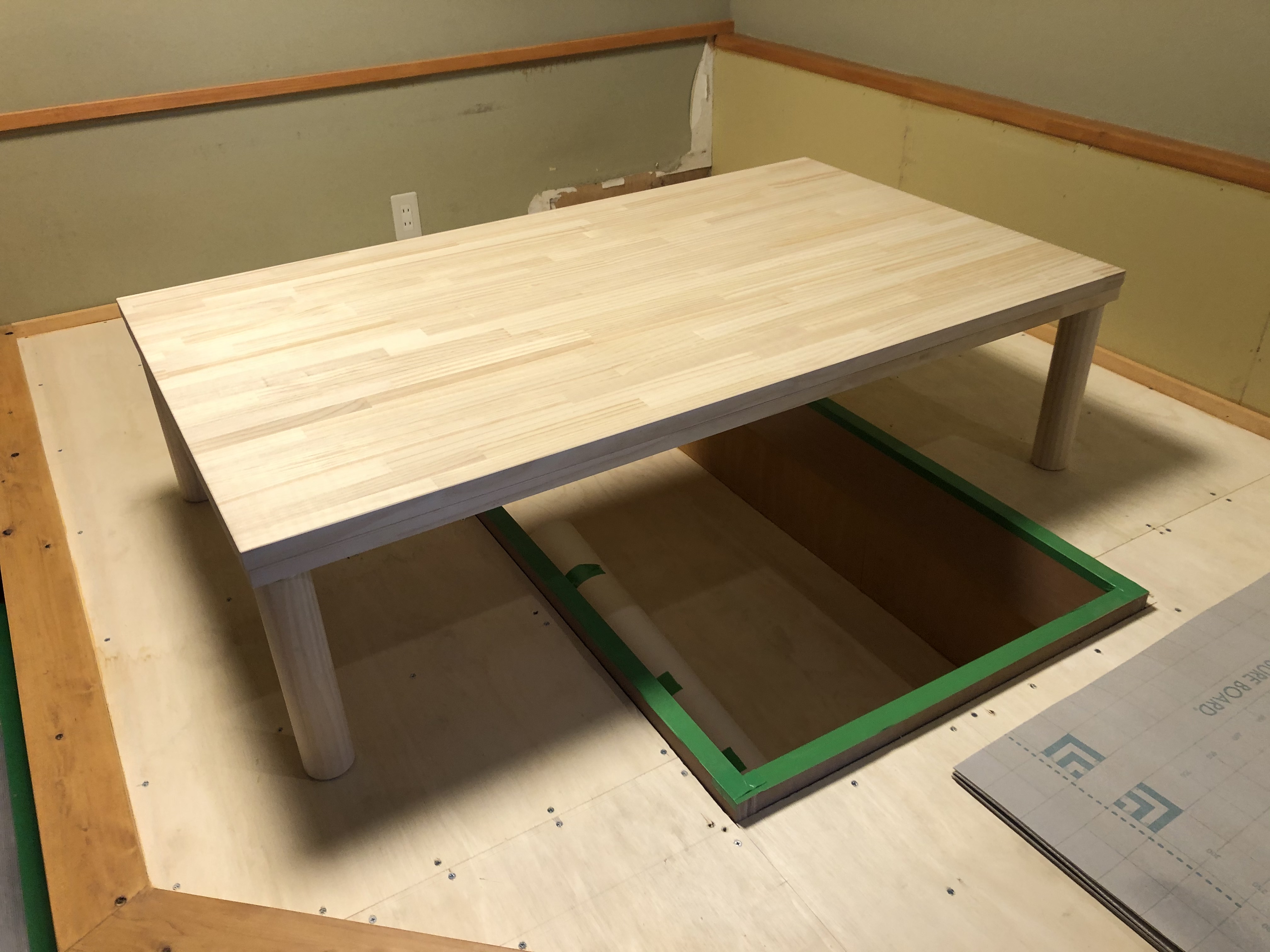 掘りごたつ仕様の小上がり・造作テーブル完成です![]()