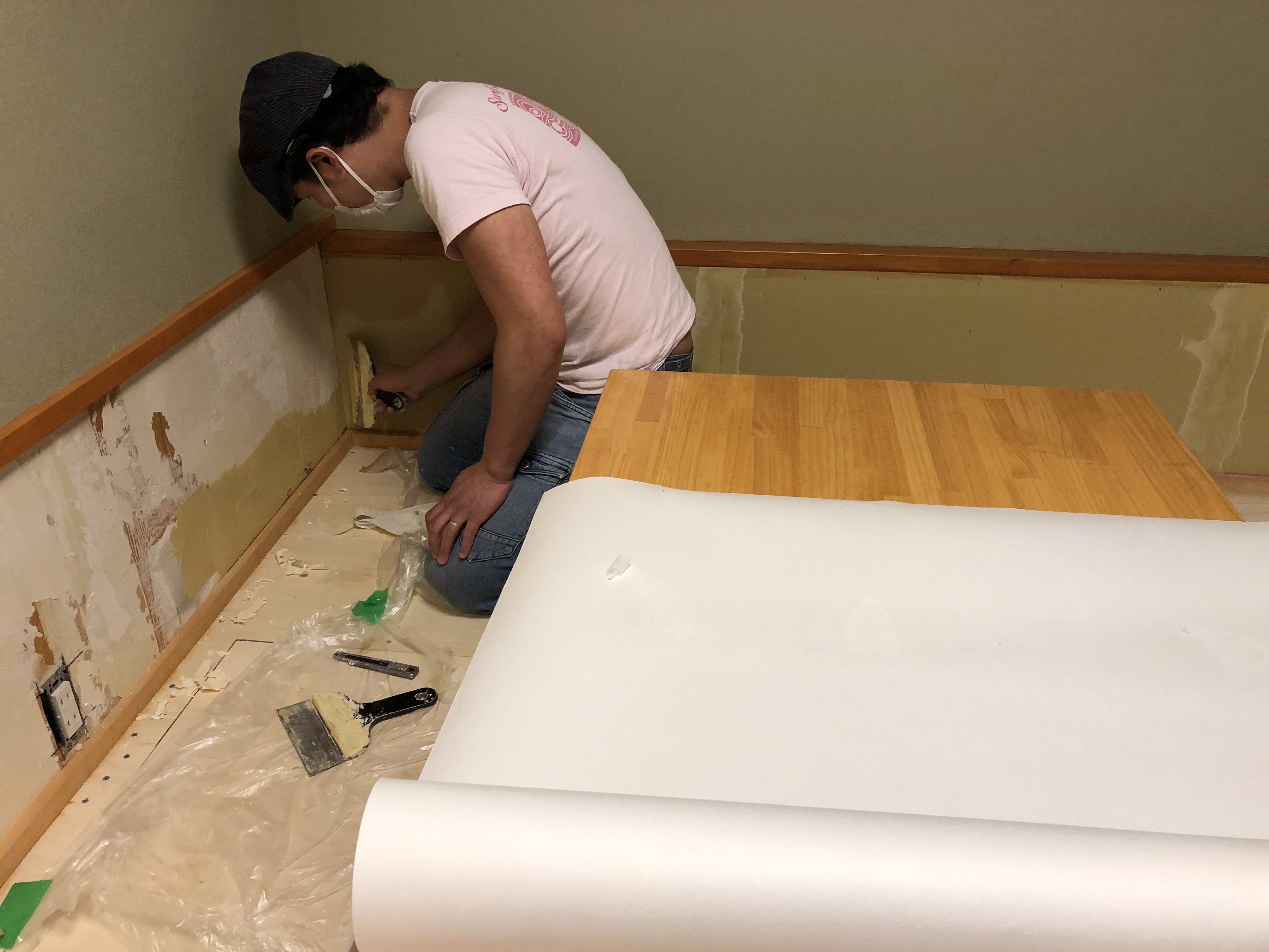 パテ処理といって小さい不陸を整えてから必ずクロスを張っていきます![]()