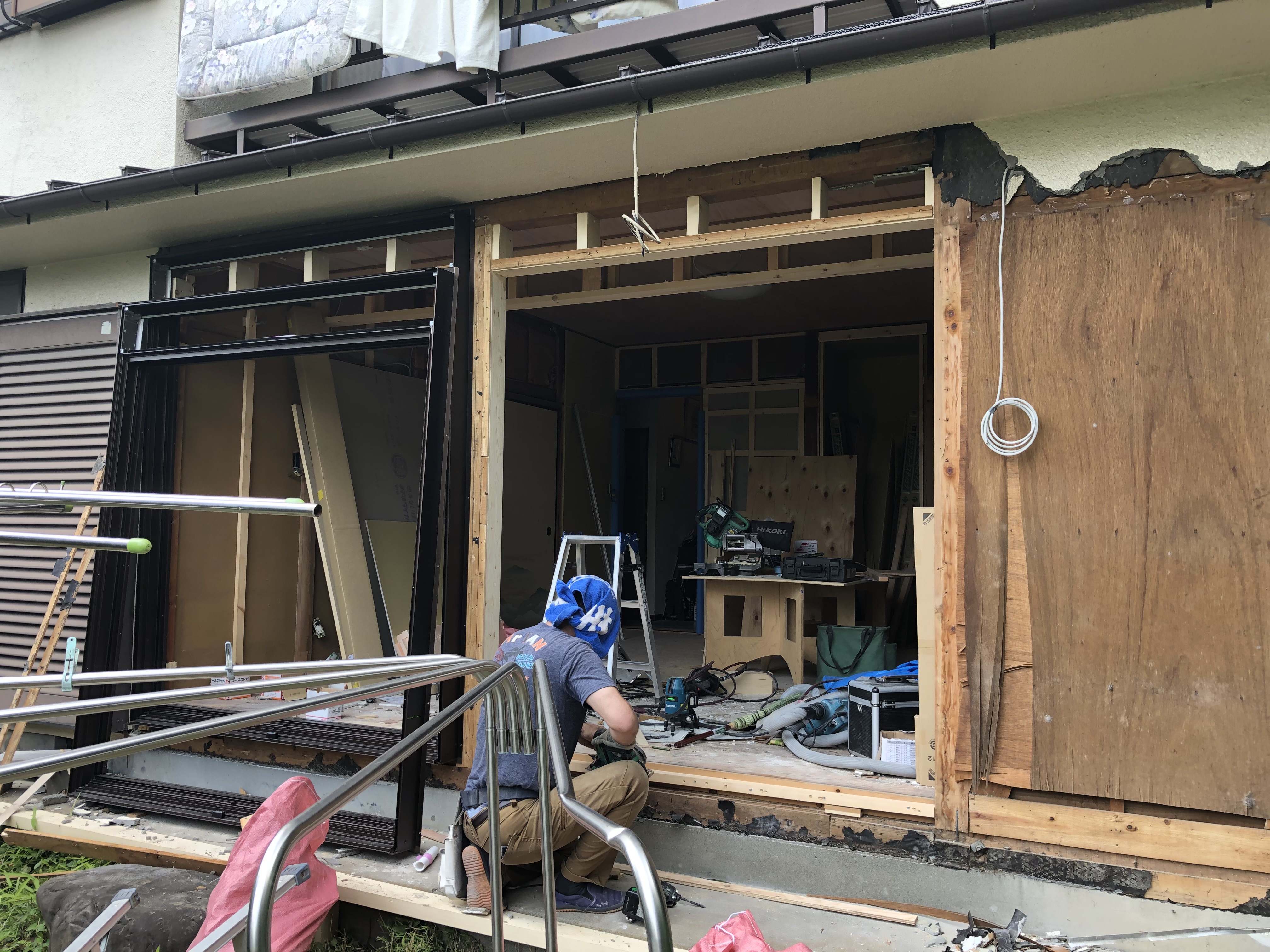 先日はたわんでしまった梁の補強とサッシの交換工事を行いました。