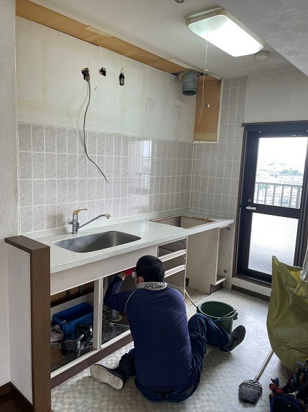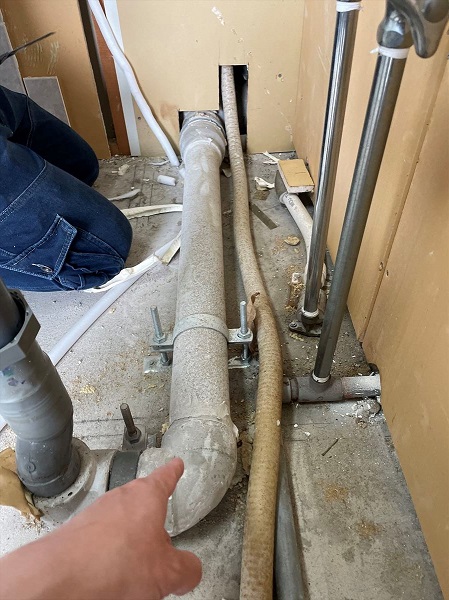 キッチン解体時に配管部に思わぬトラブルが発生![]()