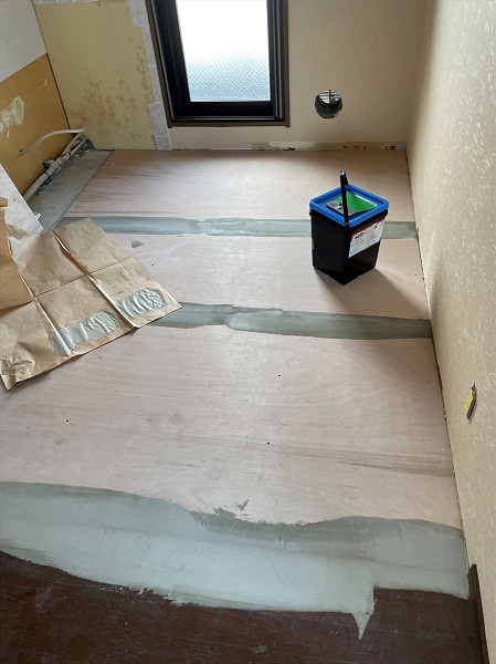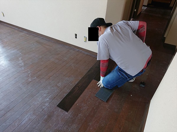 今回ご選定頂いたフロアタイルはサイズが特殊で、割付(配置の調整)に苦労したそうです![]()