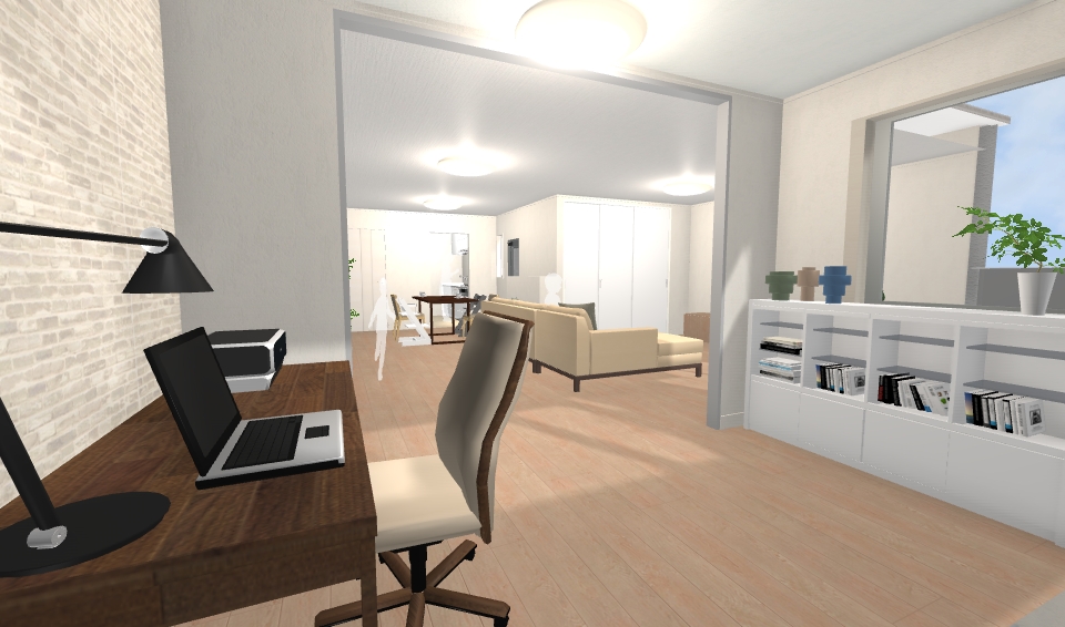 また今回の工事では、既存のサンルームスペースを旦那様の書斎コーナーにするため、段差をフラットにして同じ床材で仕上げるご提案をさせて頂きました。