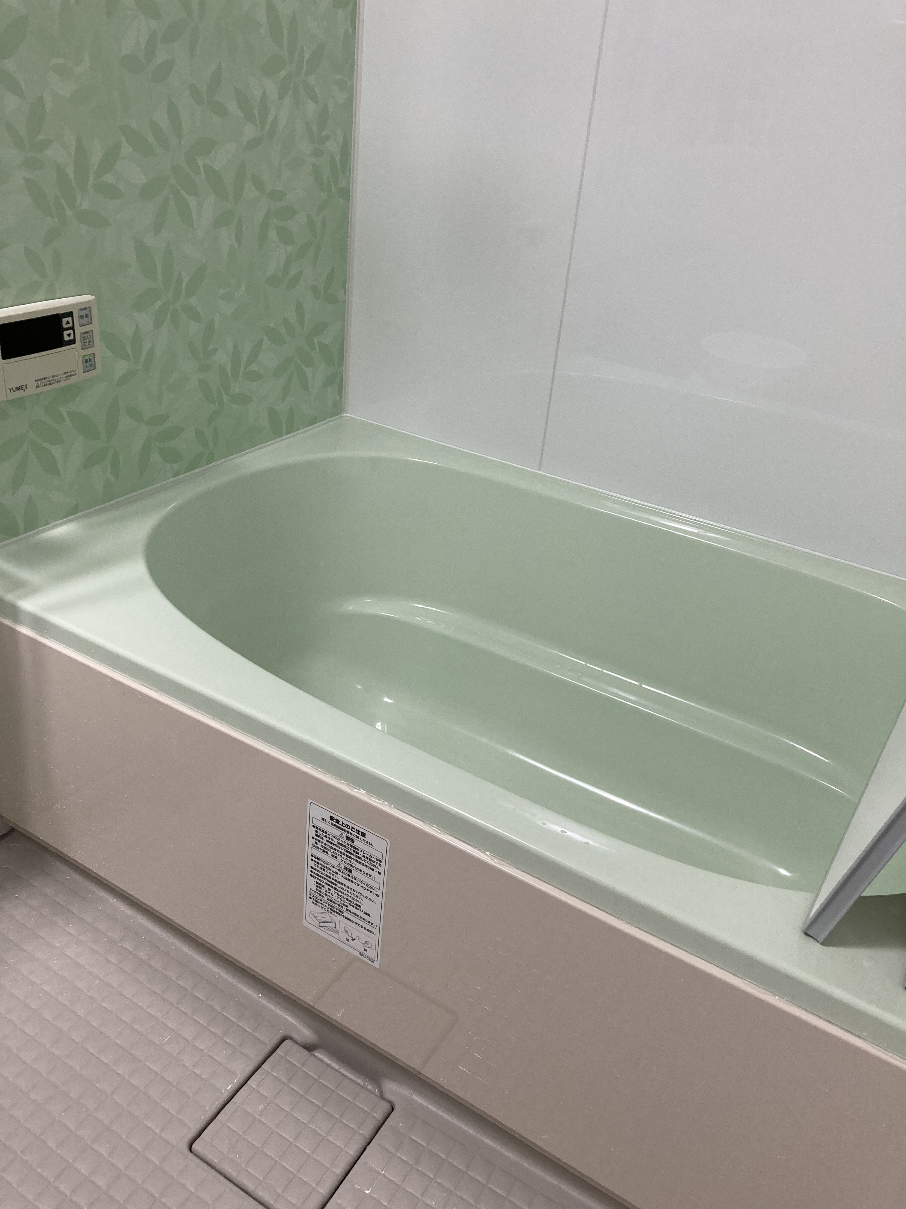 ご主人さまセレクトのやわらかい色合いのグリーン色の浴槽![]()