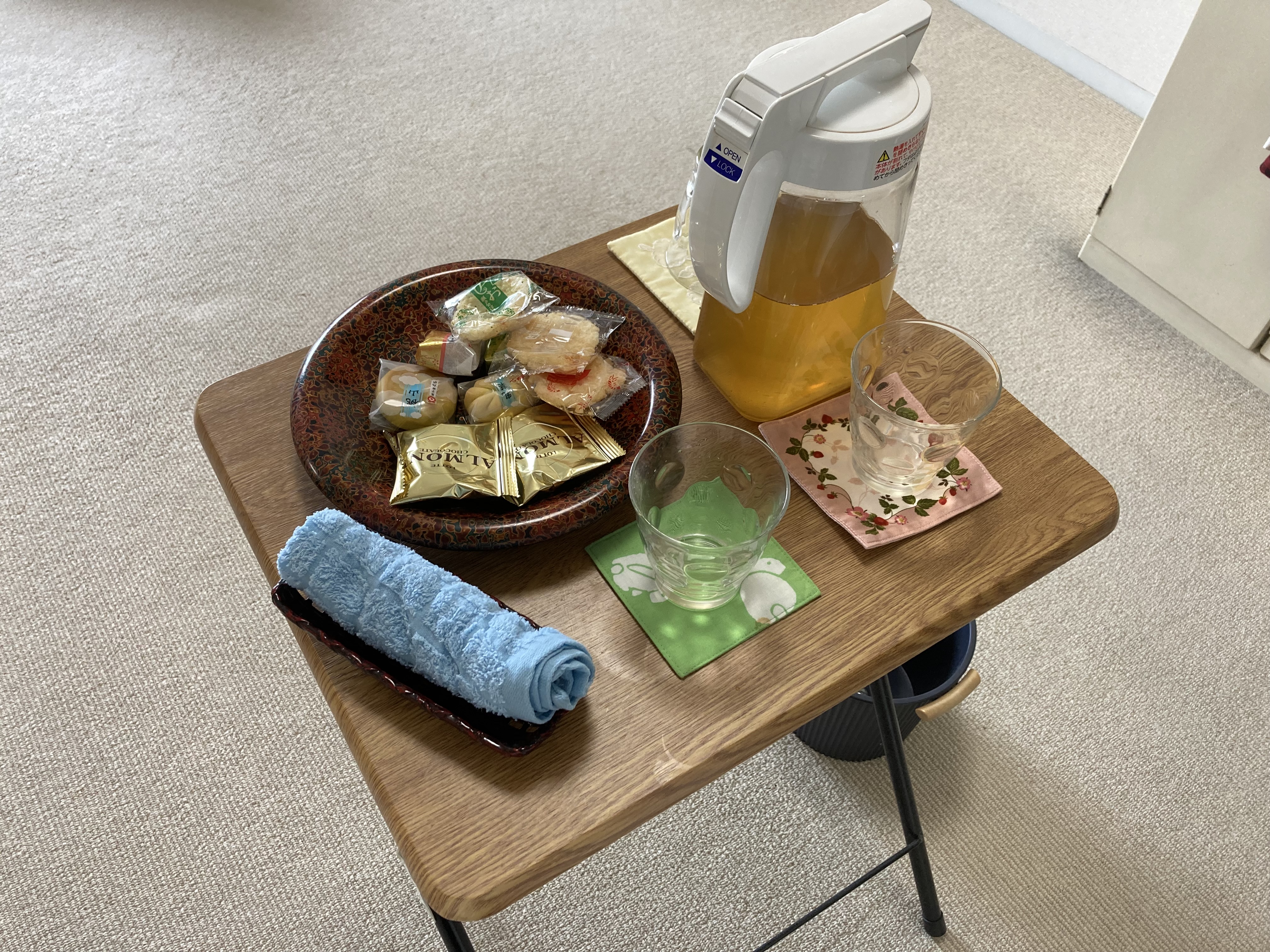いつもいつも、お茶とお菓子を用意いただいてありがとうございます![]()