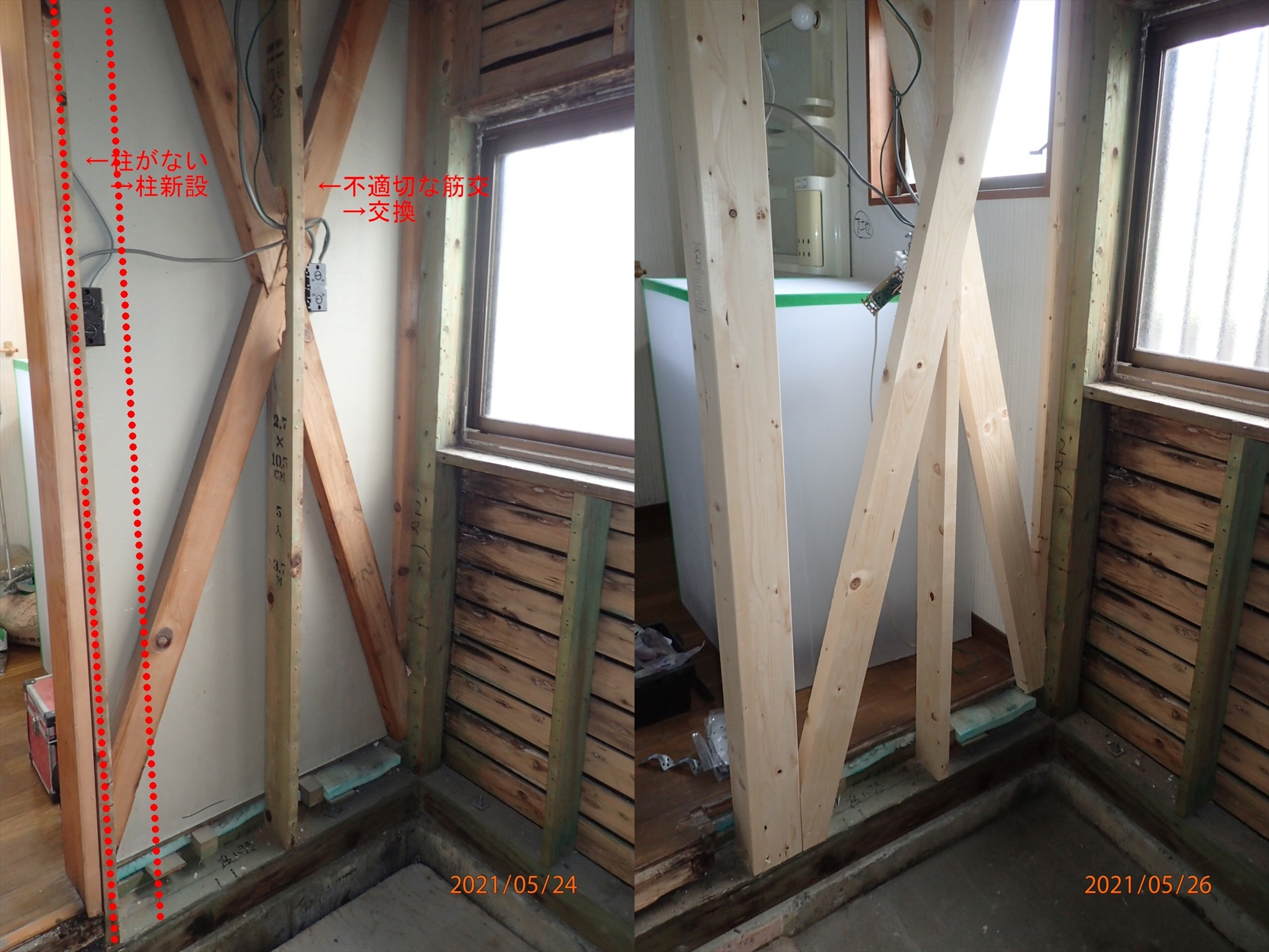 あるはずの柱がなく、また隣の筋交いも心配な施工をされていたので…