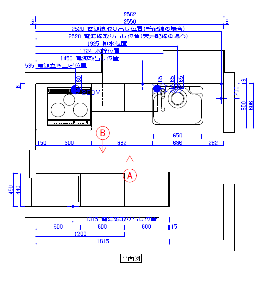 キッチンの奥行きサイズは60㎝を採用いただきました![]()