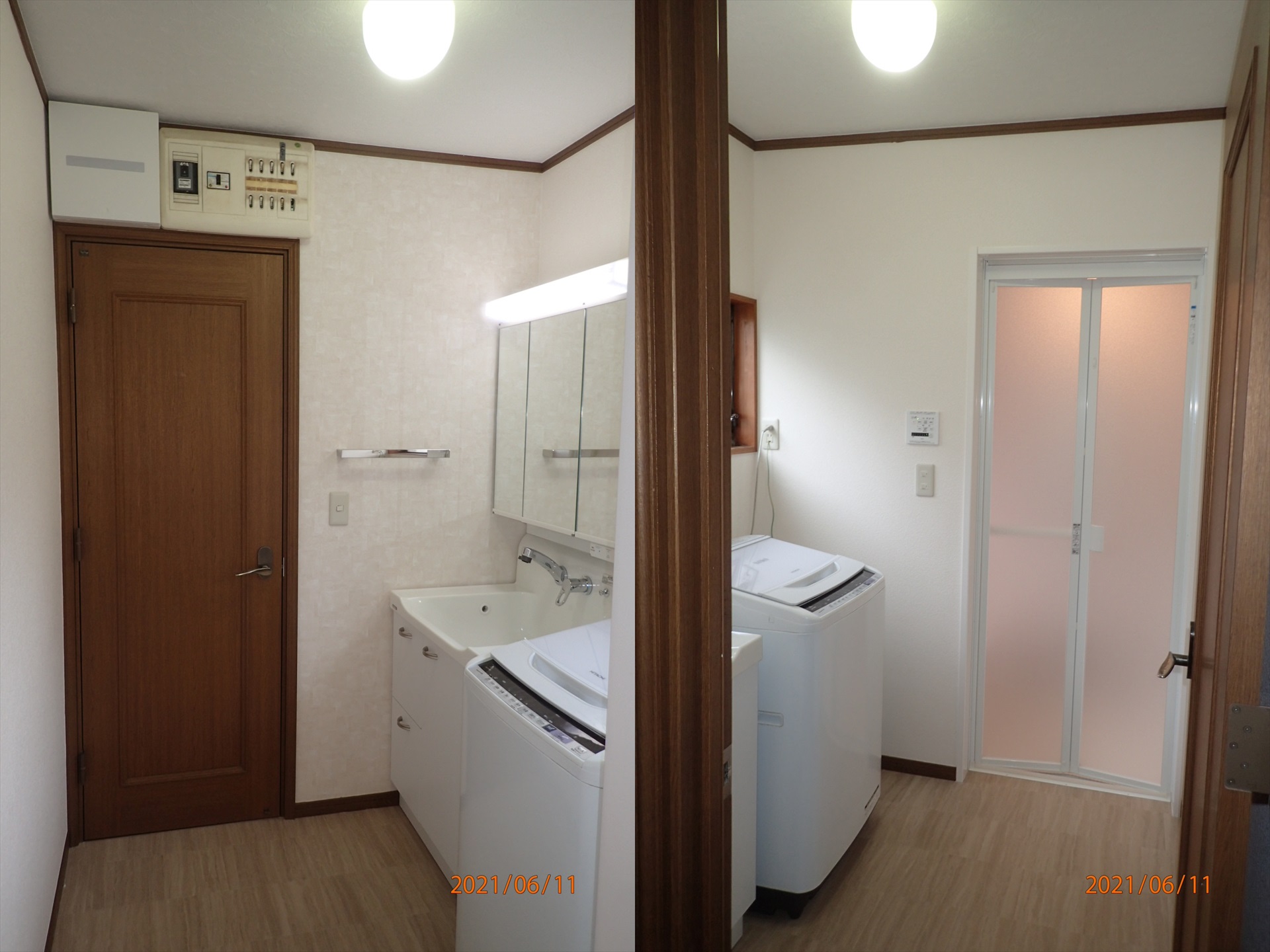 北側の洗面・トイレも交換、またクロスには消臭効果・吸放質性のあるクロスを使用しました。